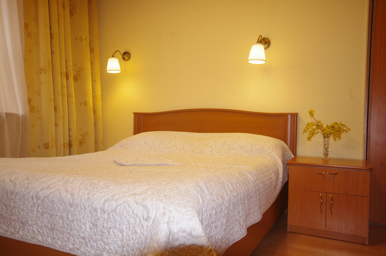 Красивый стандартный номер, оборудован односпальной кроватью и раскладным диваном. Номер оформлен в светлых тонах, с напольным покрытием.Услуги и удобства: Кондиционер, Отопление, Фен, Туалетные принадлежности, Туалет, Душ, Холодильник, Электроча