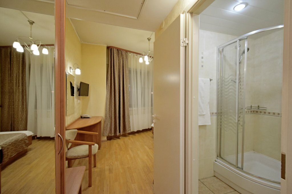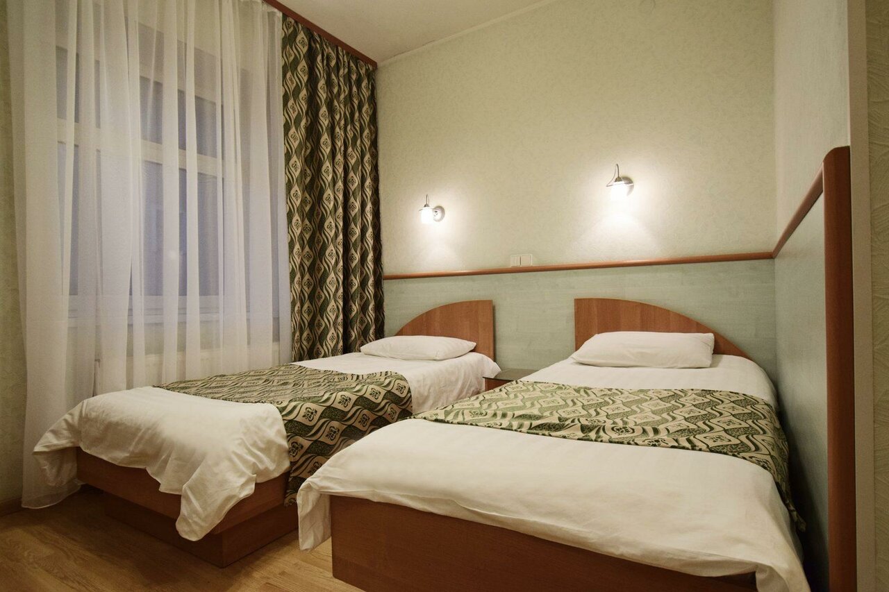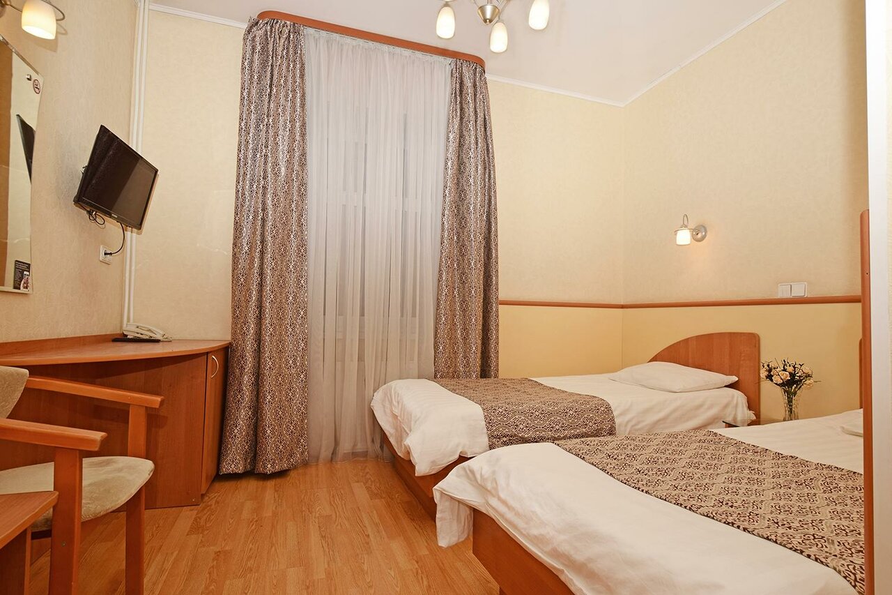 Отель не тянет на 3 звезды. Старый ремонт. Везде ржавчина и грязь. Брали номер комфорт. Минусы: в номере всего 1 работающая розетка. Отсутствие тапочек, чайника в номере. Телевизор глючит. Холодильник не холодит. Двери душевой кабины сломаны. Но их сауна — это отдельная история. Проход туда через какие-то технические помещения, очень грязно. Джакузи оказалось сломано, об этом никто не предупредил. В полу у душа торчал железный ржавый штырь. Это как вообще? За это просят 900р в час? Шторки окон не закрываются, заглядывай не хочу. Но самое неприятное, что администратор прячет единственный чайник у себя за стойкой. И когда мы, не застав его на месте, решили взять его — были отруганы админом как малые дети. Я понимаю, без спроса нельзя. Но это чайник, он всем необходим, тем более в холодном Петербурге! Плюсы: большие окна в номере. Хорошие кровати и постельное белье. P. S. Их гели для душа в баночках разбавлены водой, не советую на них надеяться.