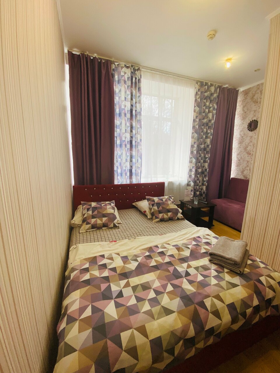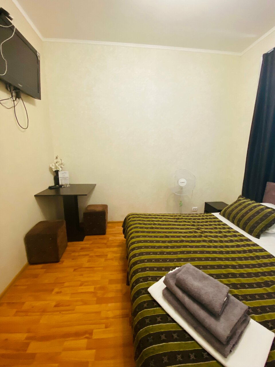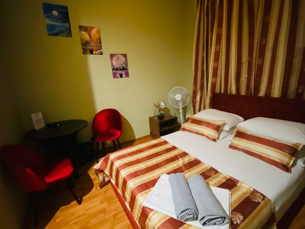 Отличный мини-отель. Был там, где нужно, когда нужно, по цене, по которой нужно, и имел удобства в номере. Когда упала температура воздуха, предложили обогреватель. Замена белья, дополнительные одеяла, полотенца, вешалки в шкафу есть. Есть общие утюг, чайник, микроволновка, холодильник. Вежливый персонал. Из нейтрального — тонкие стены, всех слышно. В номере есть телевизор и тв-приставка, которая работает отвратительно. Сам телевизор годится только для присоединения к вашим устройствам через hdmi. Розеток 2 штуки в дальнем углу номера, обычно в противоположном от стола, удлинитель обязателен. В целом, понравилось.