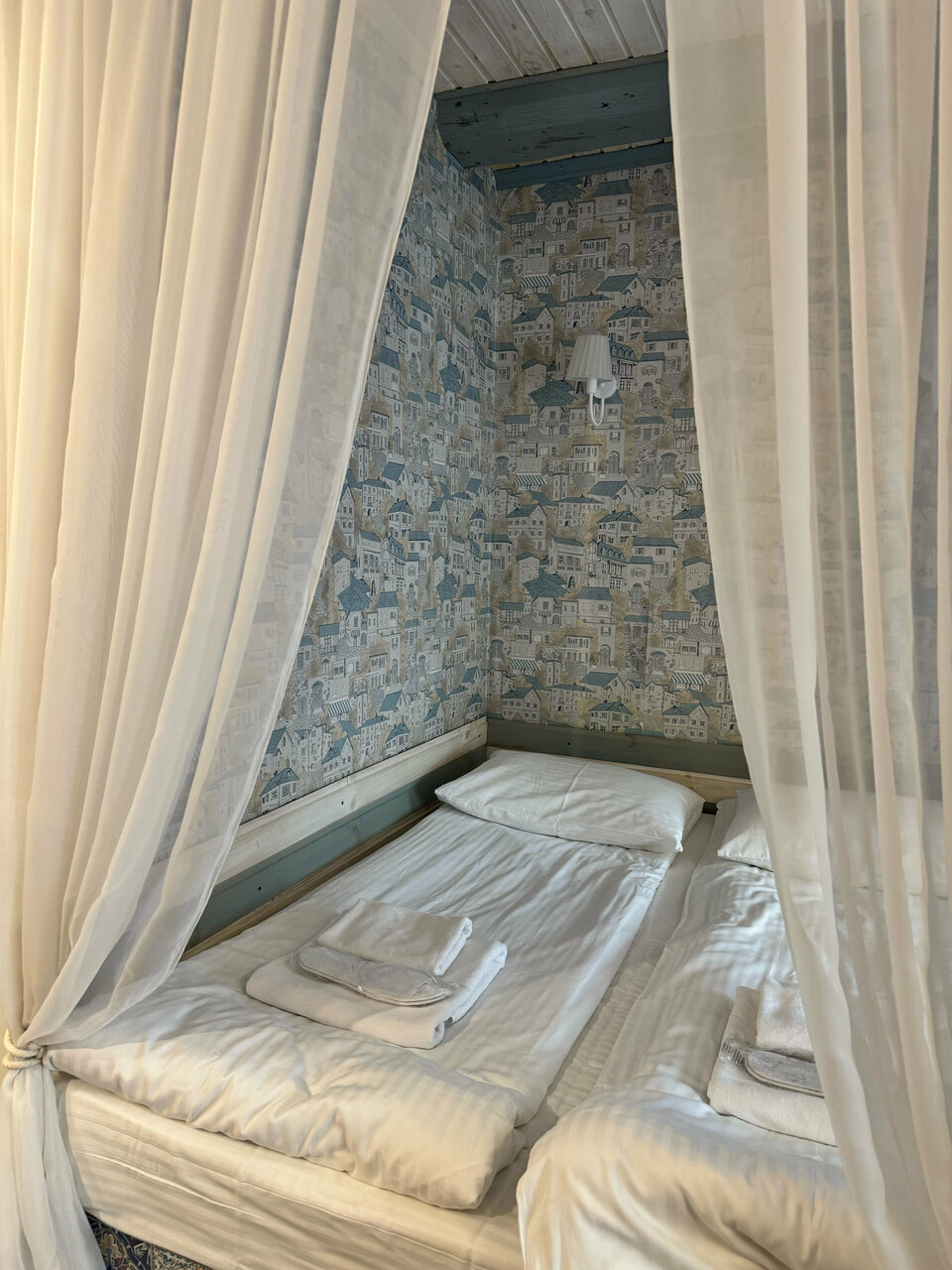 Замечательное место! Бронировали за полгода, меняли даты — Дмитрий всегда был на связи, сам встречал, помогал во всём! Номер очень удобный, стильный, комфортный — есть всё для того, чтобы чувствовать себя, как дома: чистое постельное бельё, мягкий матрас, нежные шторы, посуда + средства для её мытья, микроволновка, стиральная машинка + капсулы для стирки, фен, утюг + гладильная доска, средства для мытья тела и волос, ложка для обуви, зонтики и ваза для цветов! Дворик тихий, уютный, закрывающийся. Просыпаться у окна — отдельное удовольствие! Большое спасибо за возможность побывать в таком чудесном тихом месте!!!!