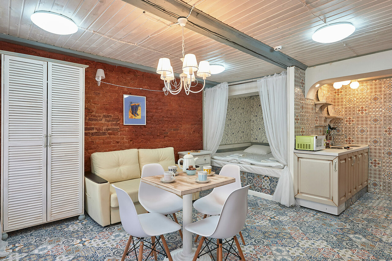 Отличные апартаменты в старой части города. Никаких посторонних запахов, тараканов и шумов с улицы. Очень внимательный и отзывчивый хозяин Дмитрий. В ноябре автономное отопление работало исправно, с водой тоже не было проблем. Чистота в номере на 5+! Есть мини кухня с плитой и комплектом посуды, микроволновка, чайник, кофе, чай, сахар. Для гостей есть зонты и сушка для обуви. Утюг и доска в наличии. Хорошая шумоизоляция. Выход в закрытый двор, а затем на тихую улицу. Расстояние до Исаакиевского собора 600 м.