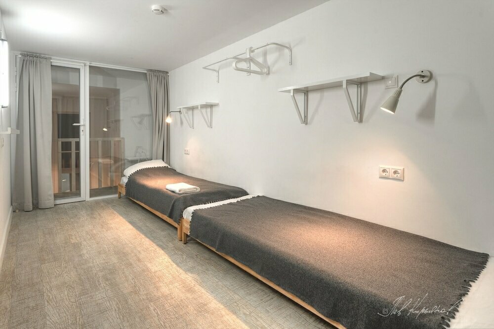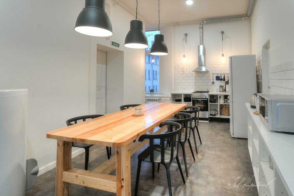 Нам очень понравился отель. Признаться, забронировав места, мы не обратили внимания, что места общего пользования общие, и расстроились когда прочитали. Делать было нечего, бронь была невозвратная и мы поехали. Нас удивило то, что внутри очень чисто, тихо и стильно. Несмотря на заполненность отеля, ты как будто бы даже и не встречаешься с соседями. Туалета целых 3, душа 2, все в рабочем состоянии и чистое. В каждом номере есть небольшая гостиная для 2 номеров, в котором телевизор, сушилка, утюг с гладильной доской и фен. Кухня милейшая, окна выходят на внутренний дворик. Но самый главный плюс этого отеля, конечно же его расположение, все рядом, в пешей доступности, дворцовая площадь минут 15 ходьбы, метро 3 минуты, Казанский собор 5 минут. Идеально! Решили, что если снова соберемся в Питер, то только сюда! Спасибо хозяевам!
