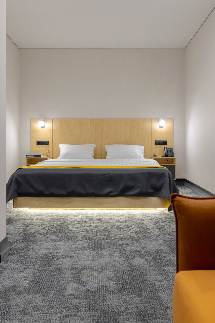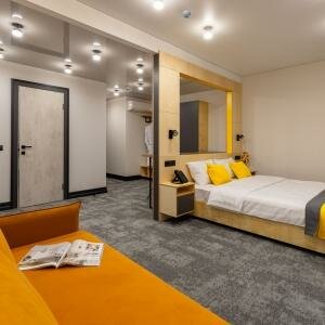 Номер повышенной комфортности площадью 18-20 м2 с удобной двуспальной 160х200 с ортопедическим матрасом. Максимальная вместимость номера - до 3х человек, третий гость располагается на дополнительном спальном месте в виде кресла-кровати.