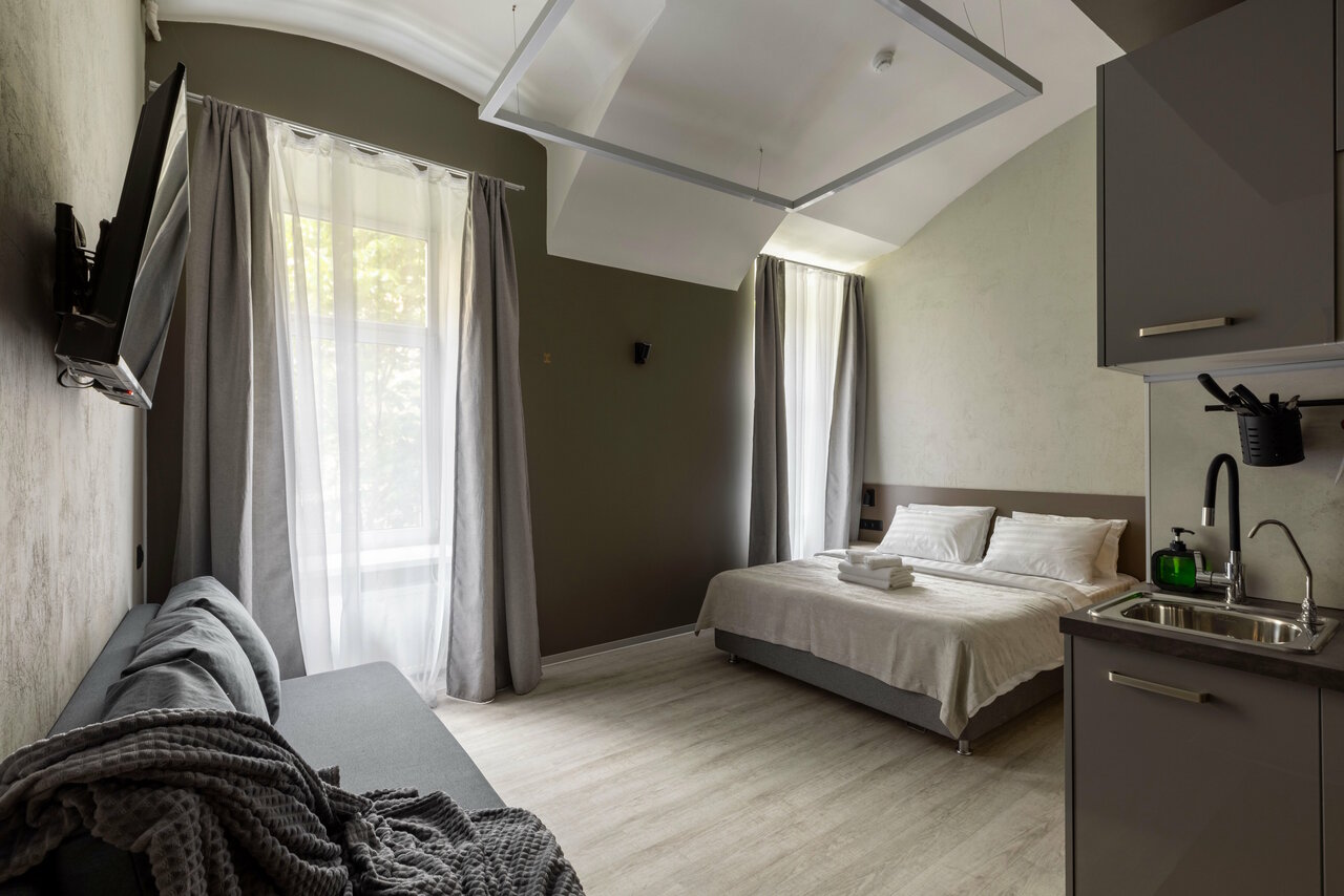 Отличный апарт-отель в центре Петербурга. Подробнейшая инструкция как добраться. Все чистое, новое, современное. И есть всё необходимое – кофемашина с капсулами, чай, посуда, утюг, гладильная доска, сушилка, фен. Можно не беспокоиться, если забыл, что-то взять с тобой. Да, и честно говоря, то с собой можно брать только одежду — остальное все есть! Соседей не было слышно — звукоизоляция на высоком уровне! Электрика, сантехника работает без вопросов и замечаний. Расположение — восторг: Рестораны и бары, бутики, музеи и метро — и все это в ПЯТИ минутах! Да-да пять минут для любого из этих мест! Спасибо большое администрации отеля за приятное пребывание.