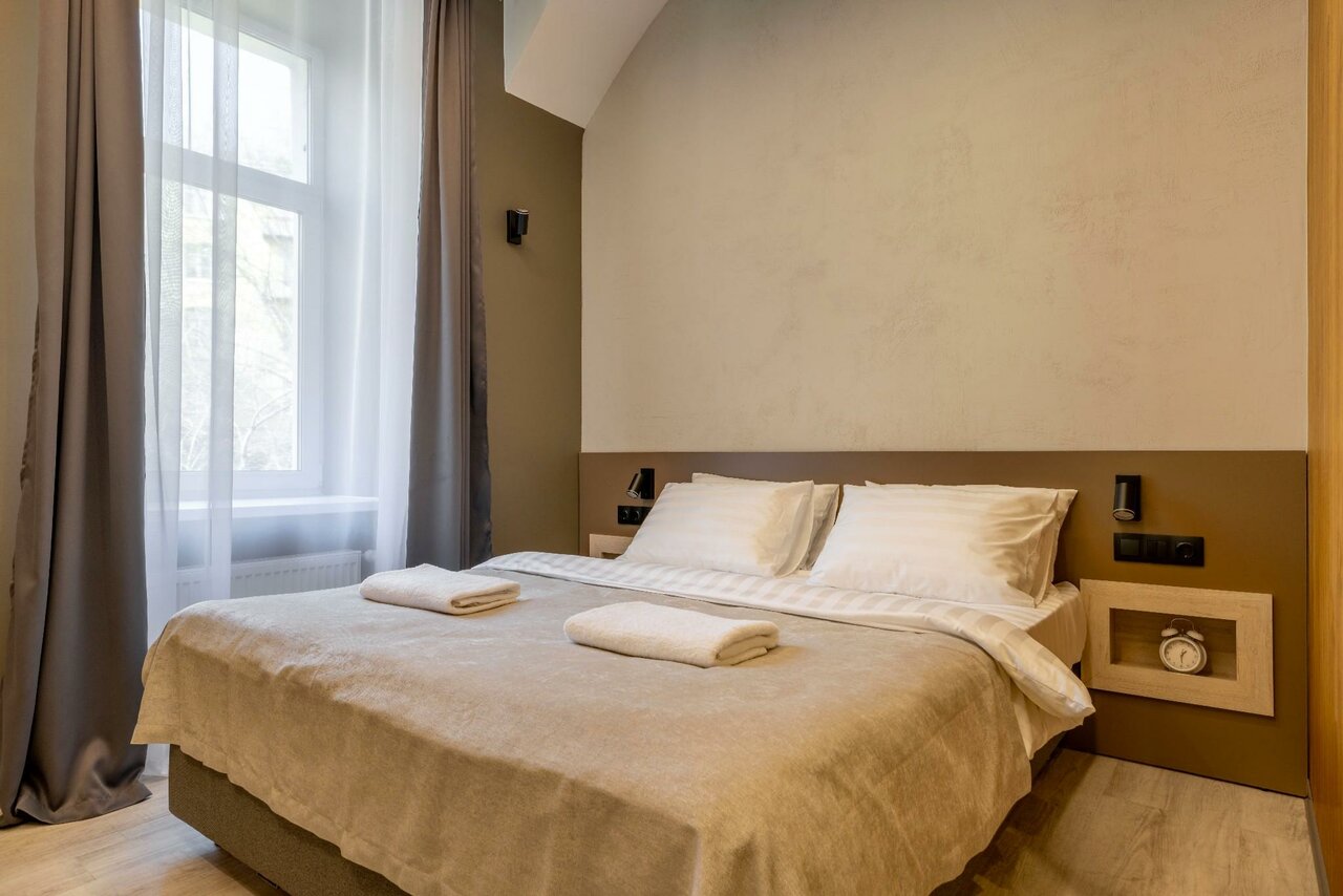 Отличные апартаменты в самом центре Петербурга. Ежедневная уборка, отзывчивый и заботливый персонал, оснащение — вне всяких похвал: в номере есть даже стиральный порошок, соль/сахар/масло для заправки салатов/чай/кофе в капсулах для кофемашины с ежедневным пополнением, разного рода посуды — от кастрюль, сковородки, стаканов/бокалов/стопок до интересных глиняных кружек, а также штопора и всех столовых приборов. Единственный недостаток, который может быть во время отдыха в таком месте — короткий отпуск, который очень хотелось бы продлить