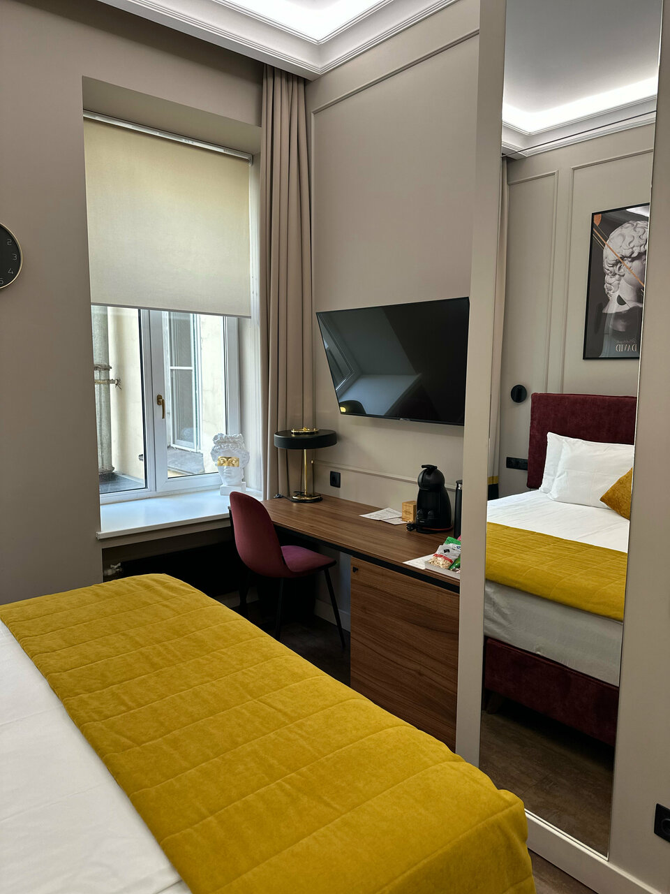 Очень уютный и тихий отель в самом центре города. Отличное обслуживание, менеджеры на ресепшн (Алидар и другие молодые люди) очень клиентоориентированы, готовы помочь, все подсказать. Завтраки качественные, вкусные. Никаких замечаний к качеству обслуживания в отеле нет. Наоборот, активно его рекомендую всем приезжающим в Санкт Петербург