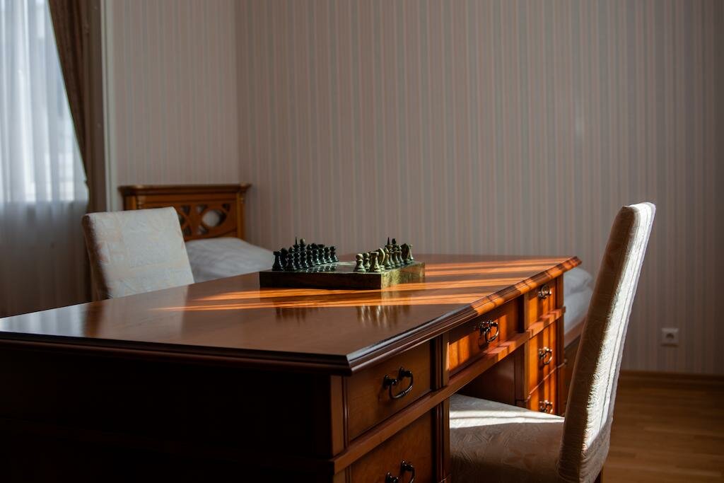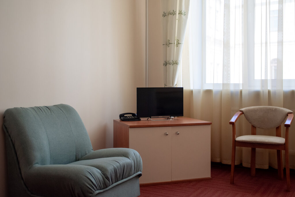 Гостиница на твёрдую четвёрку: чистый и светлый номер под номером 20, уютно, просторно. Смена белья выполнялась вовремя и незаметно, питьевой воды в номере не было, но был кулер в холле. Телевизор что-то около 19-21 дюйма (сэкономили). Вкусные и разнообразные завтраки (шведский стол).