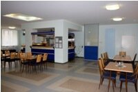 только находится столовая в здании института, вход в который по магнитным картам. Ею пользуются сотрудники института. Есть кафе при гостинице, туда попасть реально