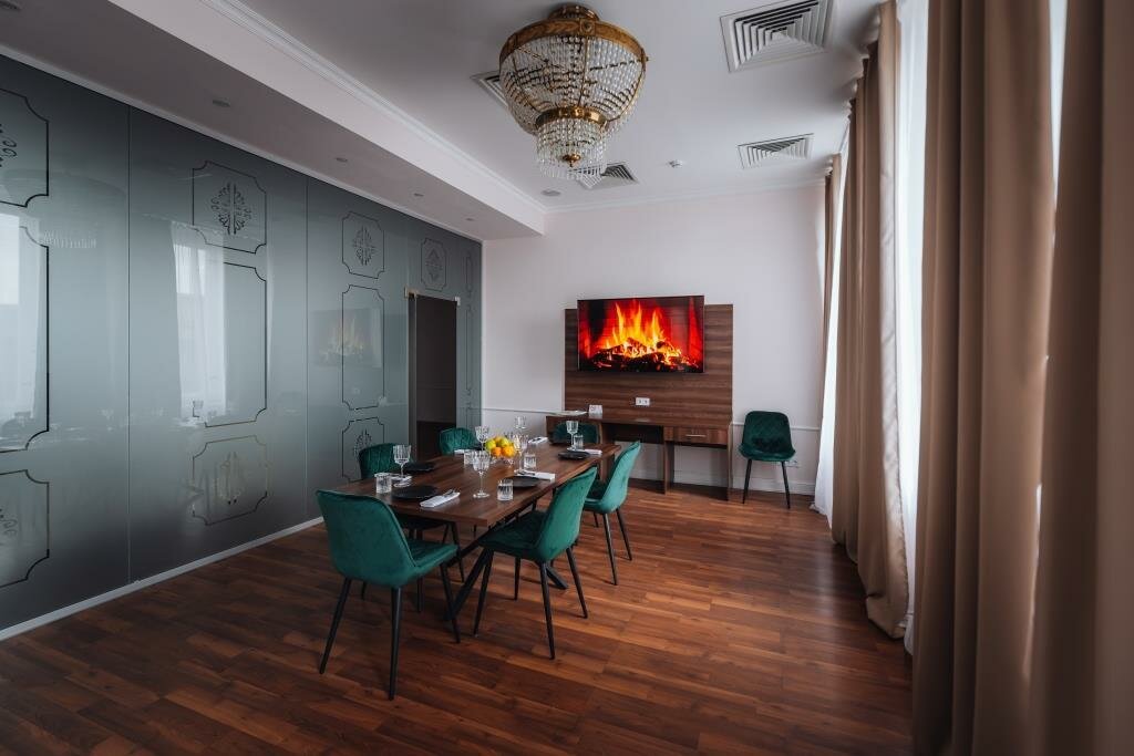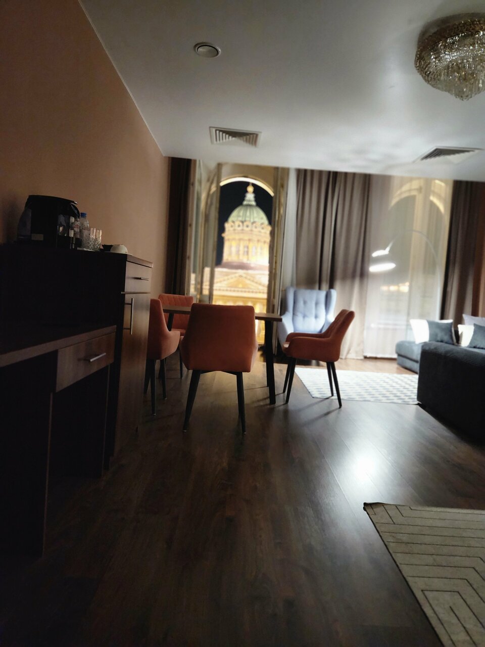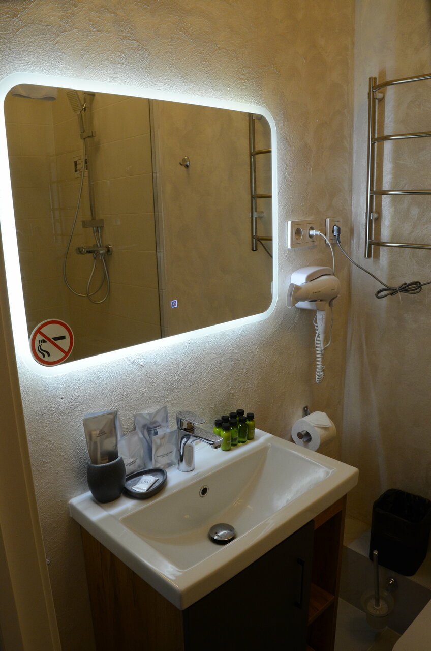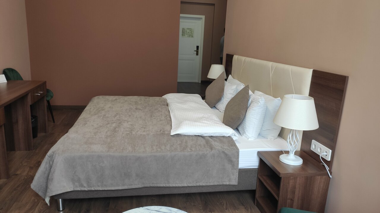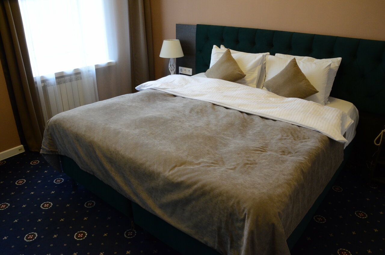 Проживали семьей, в номере 412 , переехали в 405 с доплатой , в составе : 3 взрослых , 2 ребенка номер люкс с 26 дек по 02 января : из плюсов — расположение, вид на собор ( за него доплатили на месте ) , в ресторане отмечали Новый год ( у нас маленький ребенок, задача была не выходить из здания , дабы не нести коляску по лестницам ) к ресторану претензий нет , было вкусно, комфортно и красиво . По номеру : проживали на 4 этаже , лифт только с 3 этажа , коляску 2 раза в день ( минимум ) поднимали и спускали на руках , в номере грязно , убираются плохо , запах стоит в номерах (вытяжка в туалете не работает , сам туалет течет ) , в коридорах ремонт потолков , запах сырости и грязных ковров , после кровати спина перестала болеть через 2 дня после уезда , стулья как будто из автосервиса ( все черные , кресло ямагучий в номере , даже не понятно какого цвета обивка , мебель вся из разных стилей , все максимально дешевое , я в первые была в таком люксе , больше желания нет.