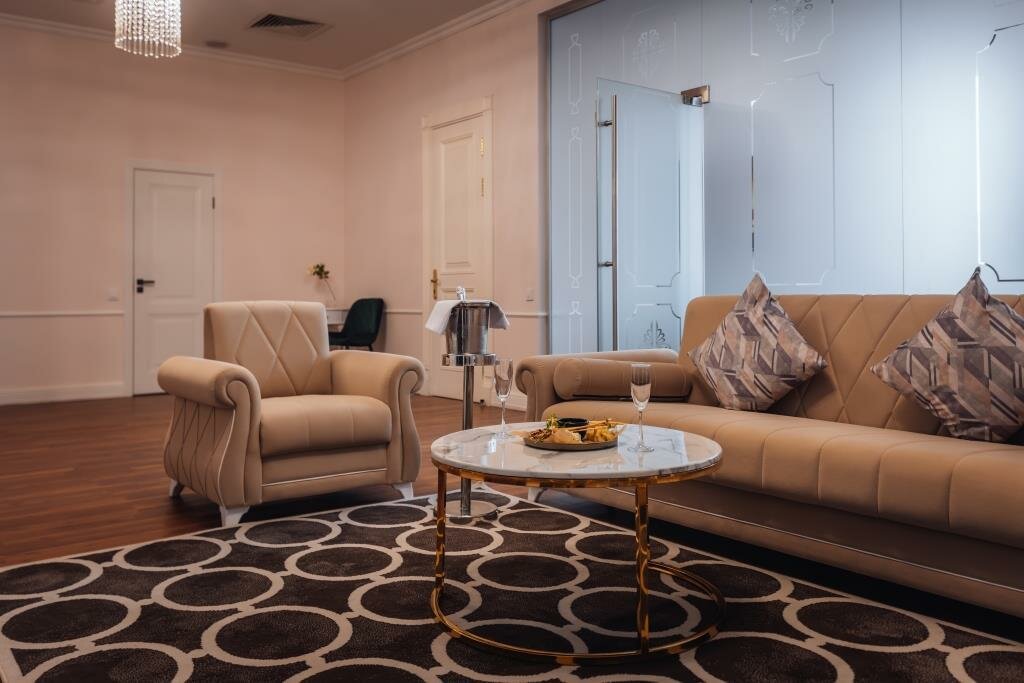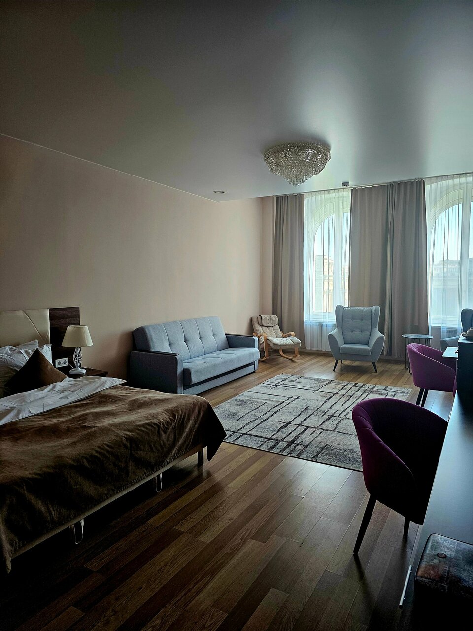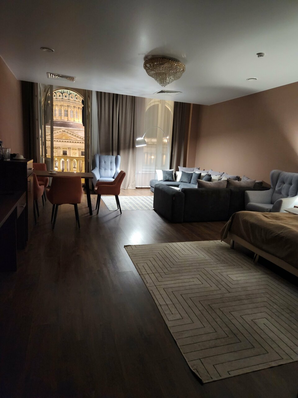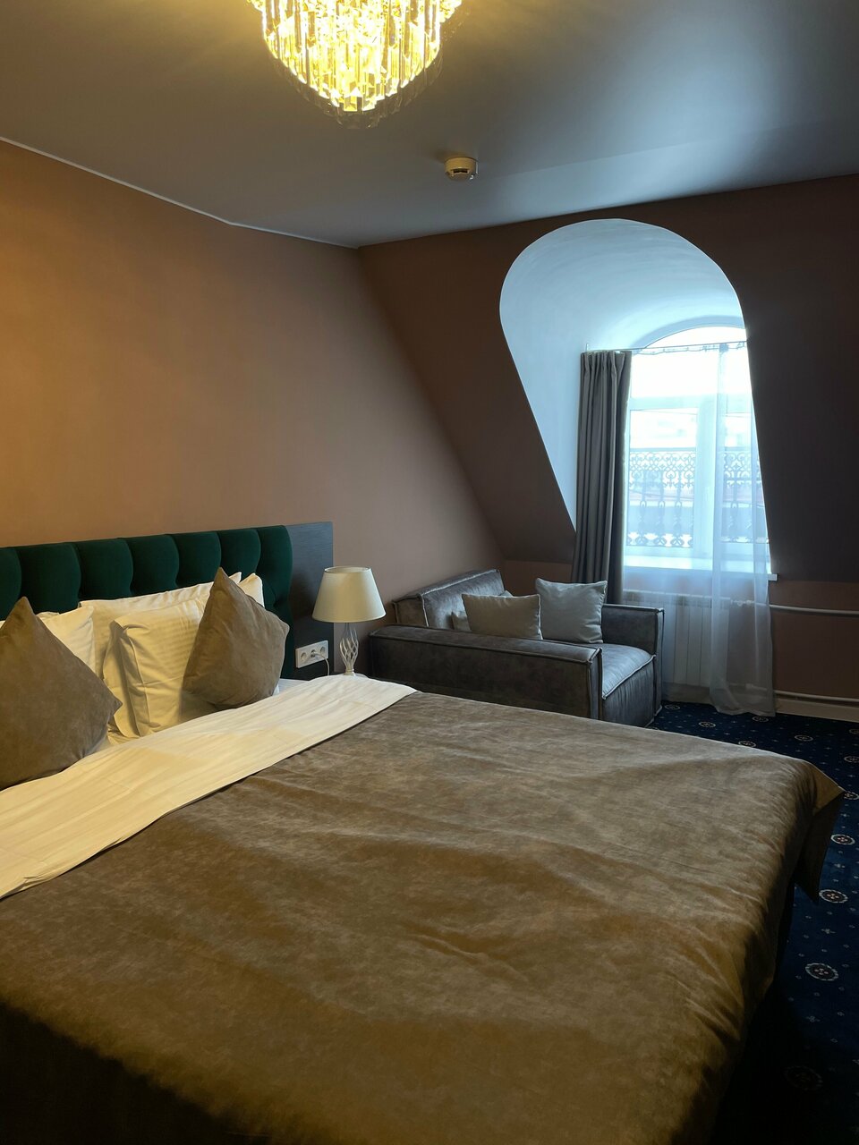 Проживали семьей, в номере 412 , переехали в 405 с доплатой , в составе : 3 взрослых , 2 ребенка номер люкс с 26 дек по 02 января : из плюсов — расположение, вид на собор ( за него доплатили на месте ) , в ресторане отмечали Новый год ( у нас маленький ребенок, задача была не выходить из здания , дабы не нести коляску по лестницам ) к ресторану претензий нет , было вкусно, комфортно и красиво . По номеру : проживали на 4 этаже , лифт только с 3 этажа , коляску 2 раза в день ( минимум ) поднимали и спускали на руках , в номере грязно , убираются плохо , запах стоит в номерах (вытяжка в туалете не работает , сам туалет течет ) , в коридорах ремонт потолков , запах сырости и грязных ковров , после кровати спина перестала болеть через 2 дня после уезда , стулья как будто из автосервиса ( все черные , кресло ямагучий в номере , даже не понятно какого цвета обивка , мебель вся из разных стилей , все максимально дешевое , я в первые была в таком люксе , больше желания нет.