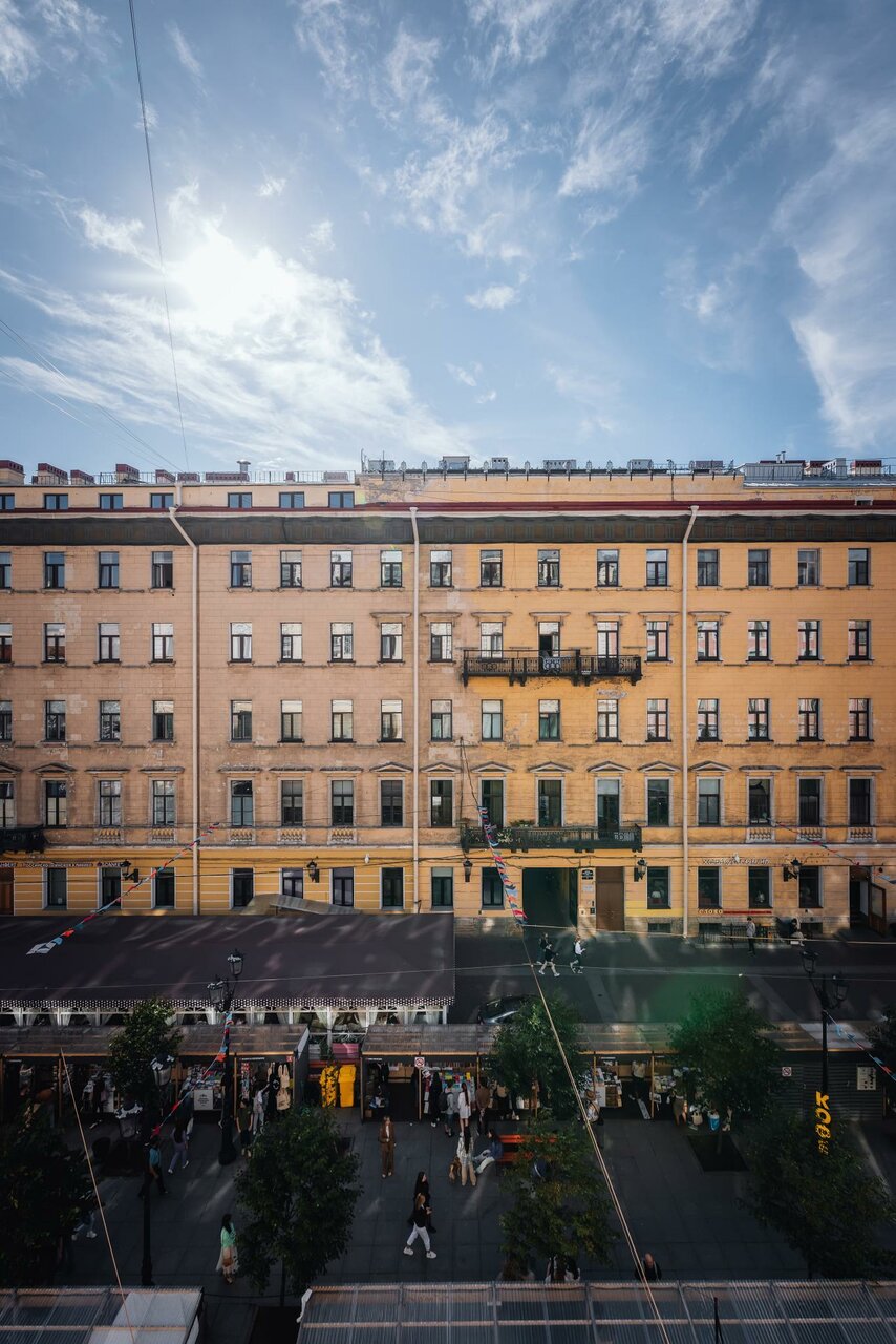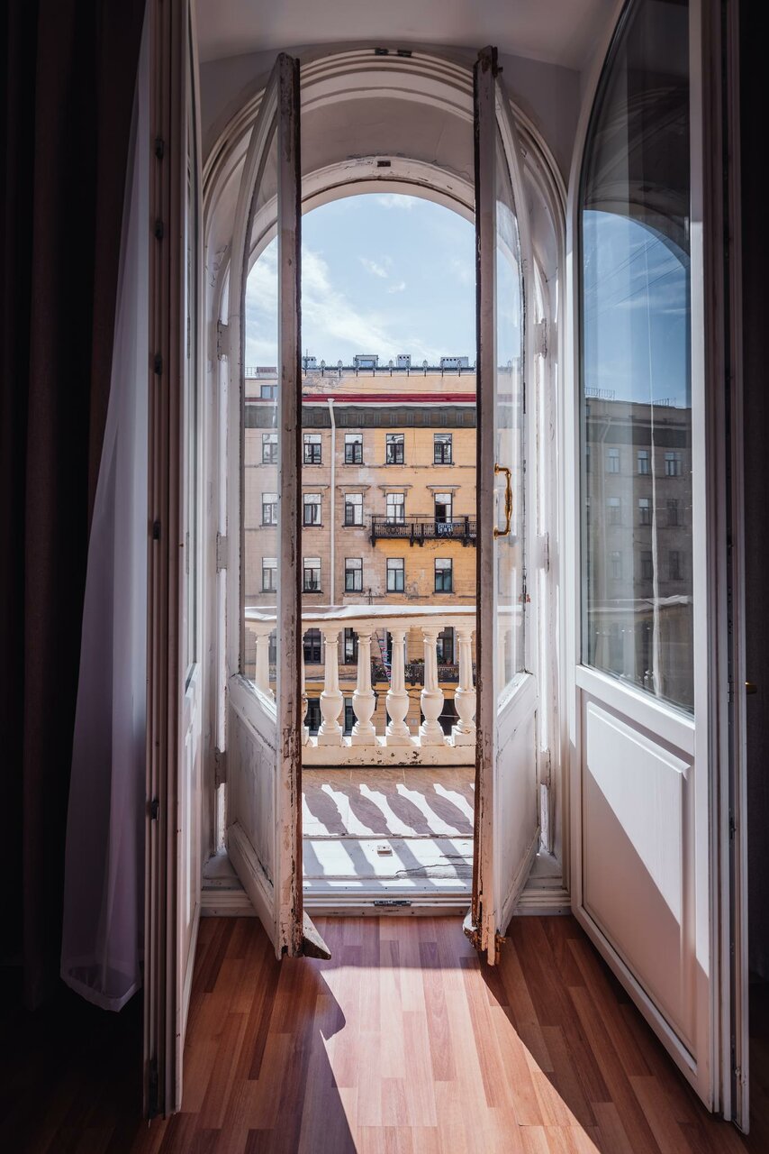 Люкс с видом на пешеходную зону улицы Малая Конюшенная позволит Вам насладиться красотами города не выходя из отеля!Один из люксов панорамный, с окнами в пол и балконом.Площадь номеров 55- 60 кв. м.