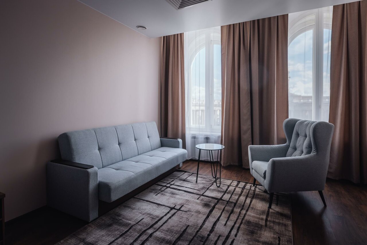 Останавливалась в номере люкс, был шикарный вид на Казанский собор. Номер чистый, уютный, чувствовала себя как дома) Так же есть: бесплатный WiFi, для меня это большой плюс, т.к. есть возможность работать прямо из номера с хорошим Wi-Fi, свой холодильник в номере и кондиционер, в жаркую погоду он сильно выручал) Ещё очень удобно, что в отеле есть прачечная
