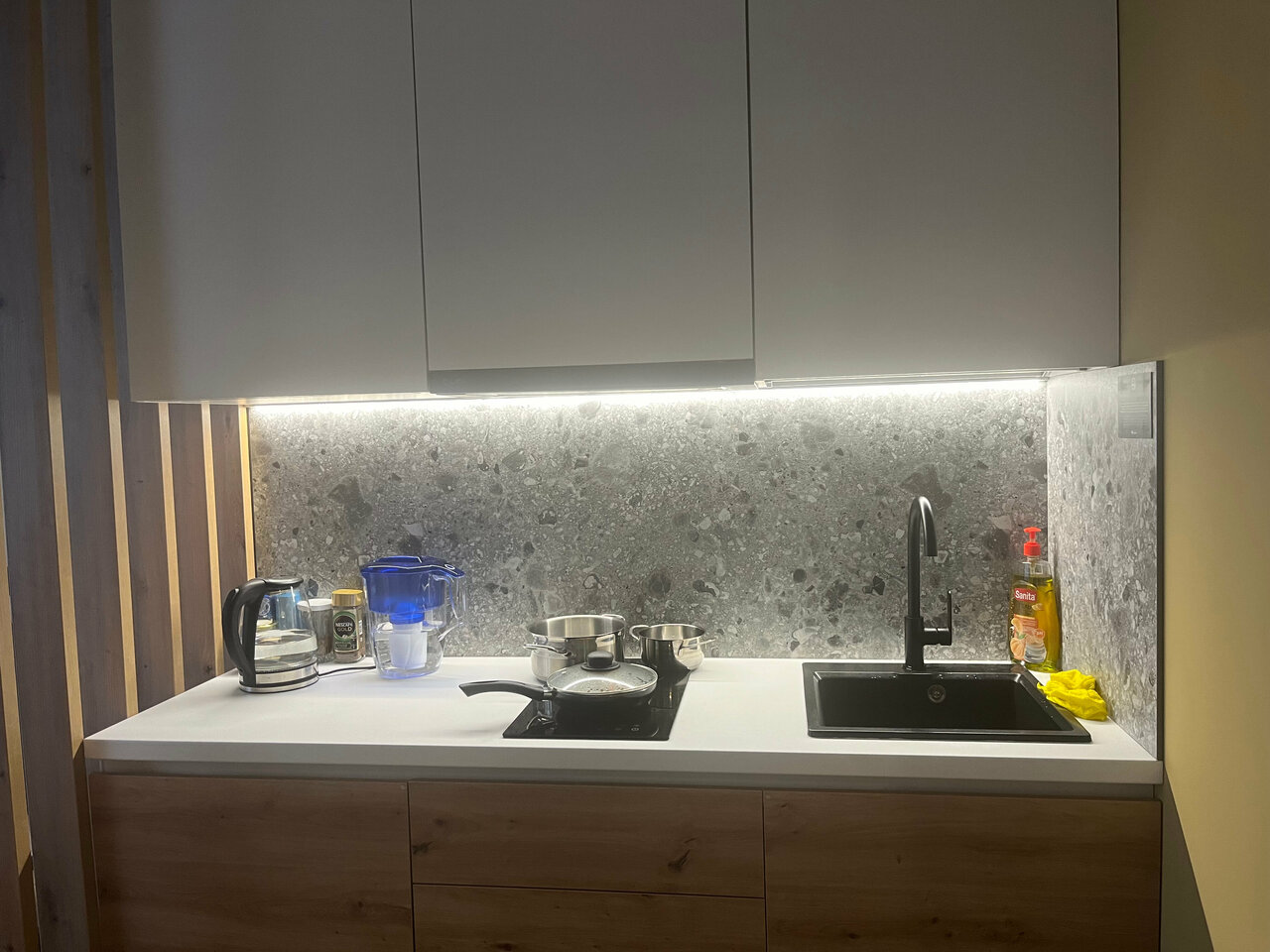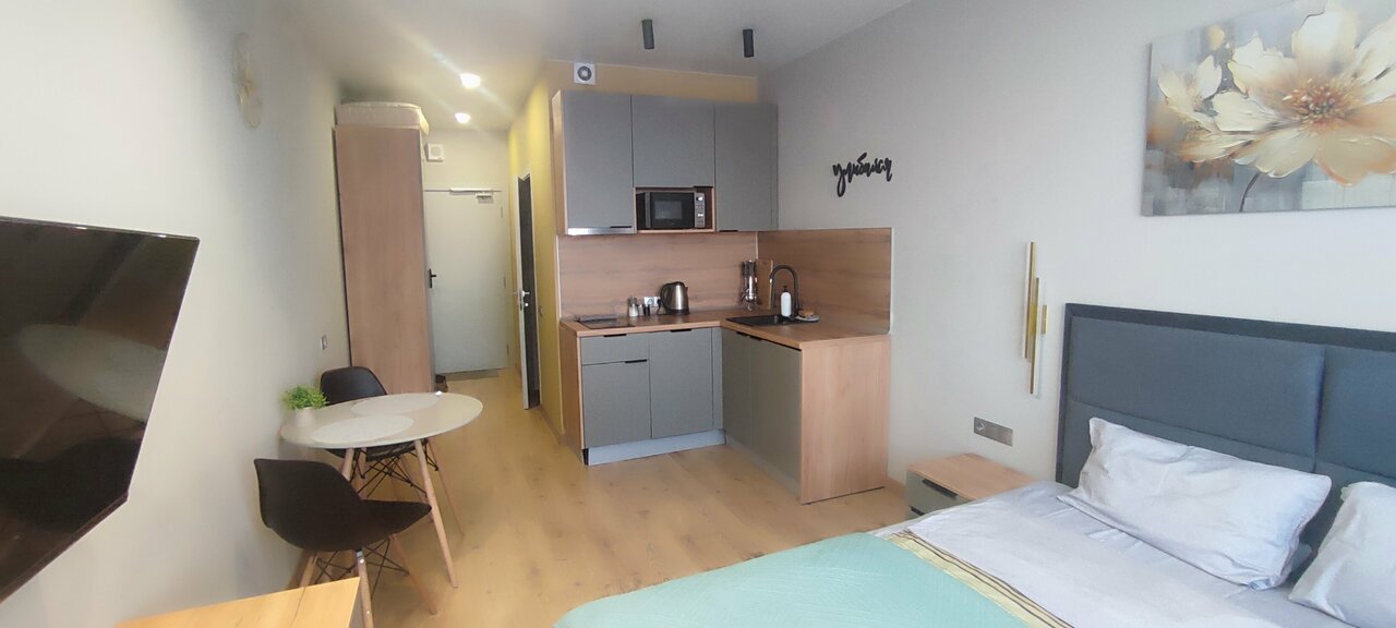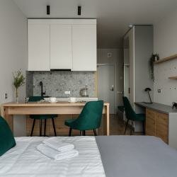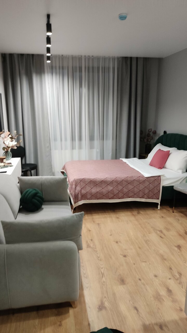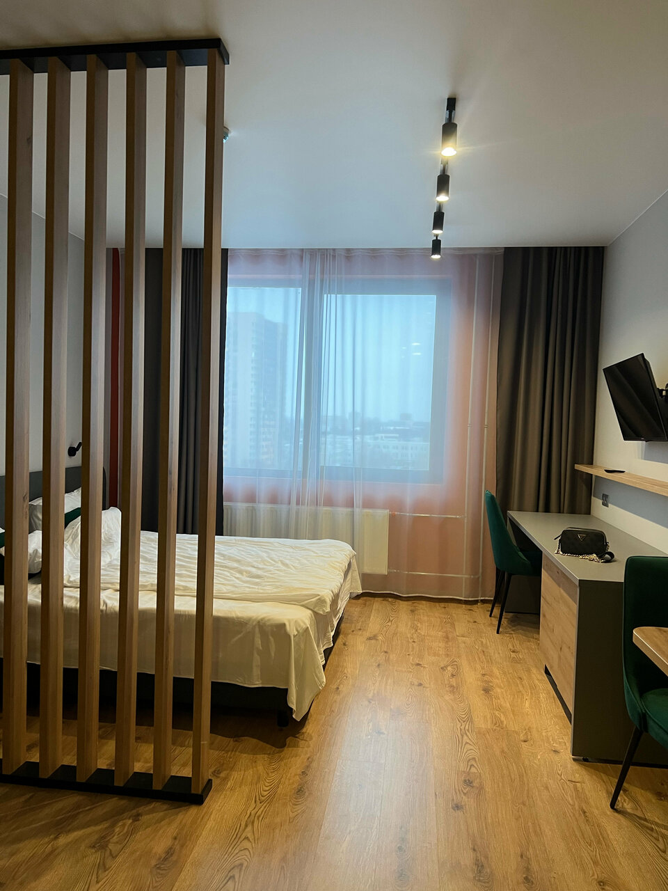 Апартаменты хорошие, но есть много очень не приятных нюансов. Как заселились, забыли написать код к вайфай. Слив в номере забит, минуту моешься и потом стоишь пол часа ждёшь чтобы вода ушла. Тапочки тоже в номере не предусмотрены. И цена которая указана на сайте не соответствует той что вы платие