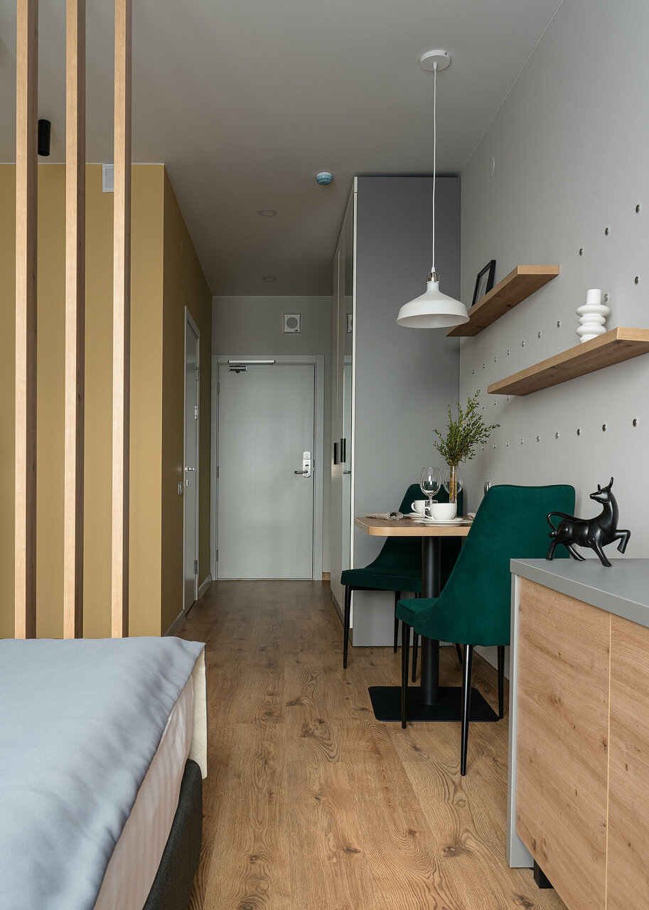 Построена в 2022 году, сочетает удобства апартаментов и сервис отеля.