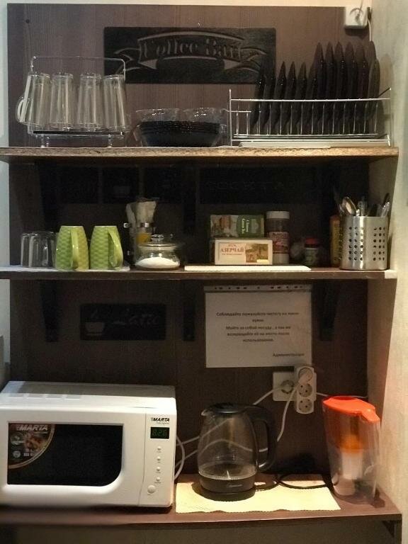 Администратор не находится постоянно в мини отеле. Ванная комната общая. Можно пользоваться чайником,чай,кофе, сахар бесплатно, можно б/п постирать бельё ( порошок предоставляется), имеется сушка; холодильник. Особенно понравились завтраки( доп плата) на выбор- вкусно,по домашнему. Даже сосиски хорошие:)Удачное расположение- Невский проспект,но внутри домов- тихо, спокойно.