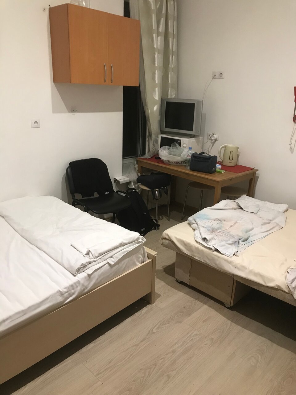 Жили в номере три дня и всё было супер. Номер частенький, душ и туалет тоже чистые, убирают их каждое утро. Перед нами горничная вымыла номер , общалась очень вежливо и отвечала на все наши вопросы, в общем огромный ей респект. Соседи были все тихие, шума постороннего никогда не было. Очень удобное расположение, до центра идти минут 15-20, до метро минут 10, рядом есть сетевой магазин Магнит и Дикси. В общем идеальный вариант как по мне, стоимость довольная низкая для находения почти в центре, условия хорошие, всё чисто, так что однозначно рекомендую