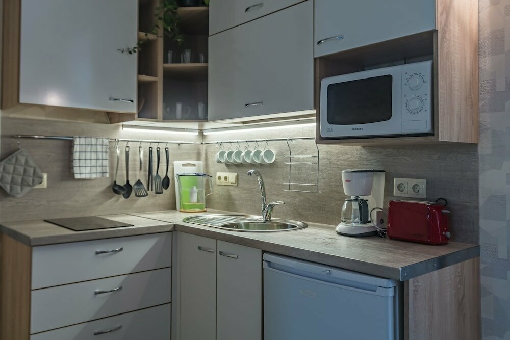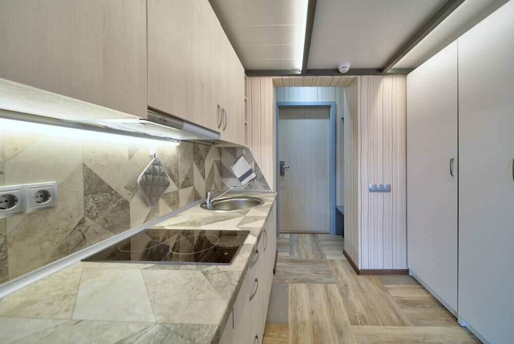 Отличная гостиница. Не первый раз останавливаемся с семьёй. Не один раз рекомендую своим знакомым,которые едут в Санкт Петербург. В номере есть все,плита электрическая, холодильник,посуда для приготовления,тарелки и чашки. Много шкафов для хранения ваших вещей ,утюг и гладильная доска. А кровати у них волшебные- не охота вставать.