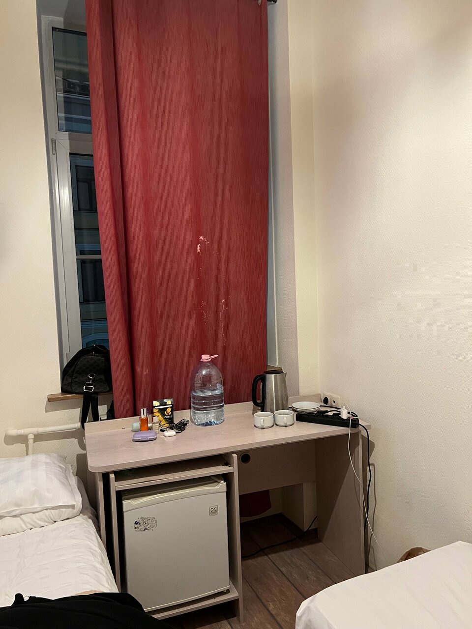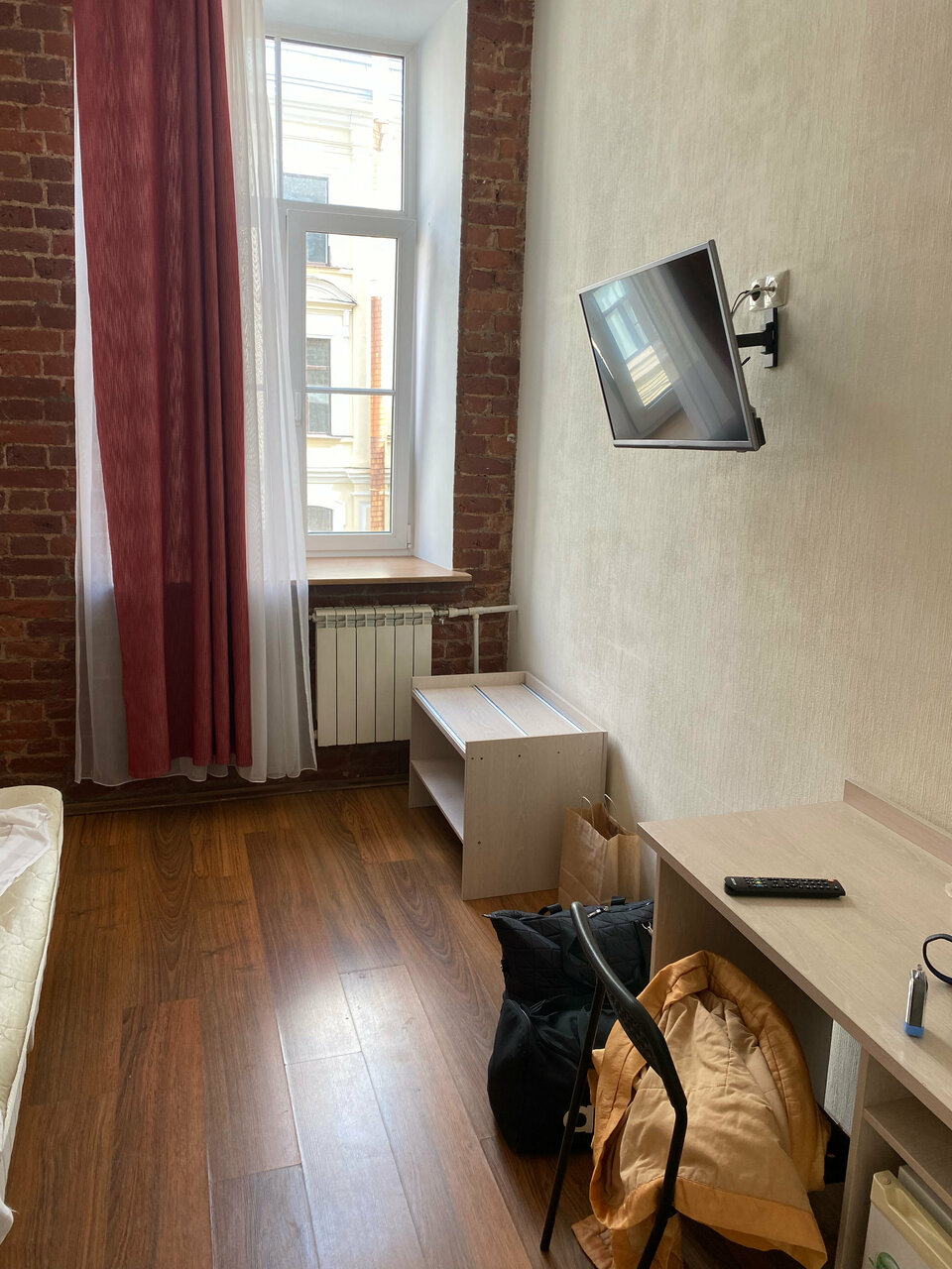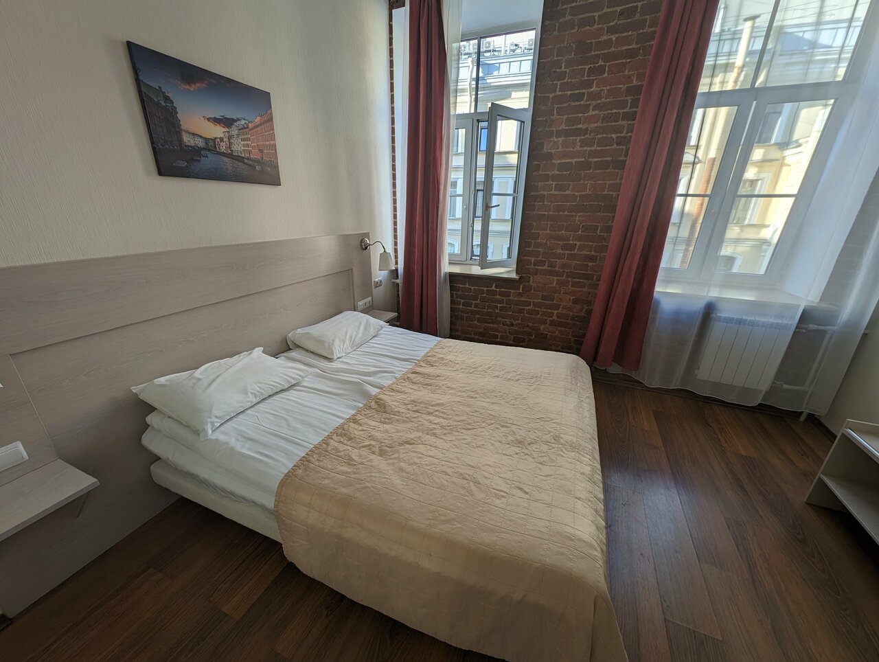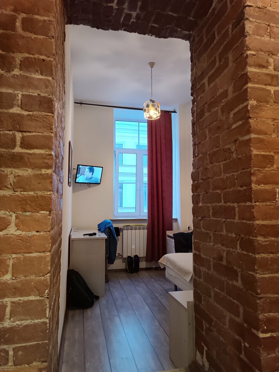 Супер Гуд. В шаге от Невского за такой бюджет. Чайник и утюг в свободном доступе! Не воняет в туалете. Хорошее чистое белье. Очень атмосферная лестница и вид из окна на соседний двор. Из минусов- пишут что тяжело подниматься на 4 этаж- мне нормально. Главное- это конечно слышимость-тут если плохо спите, то надо быть готовым что не все дождаться в 9 вечера. Вернусь обязательно. Соотношение локации и бюджета- топ!