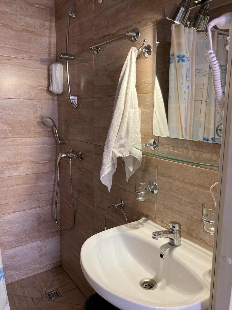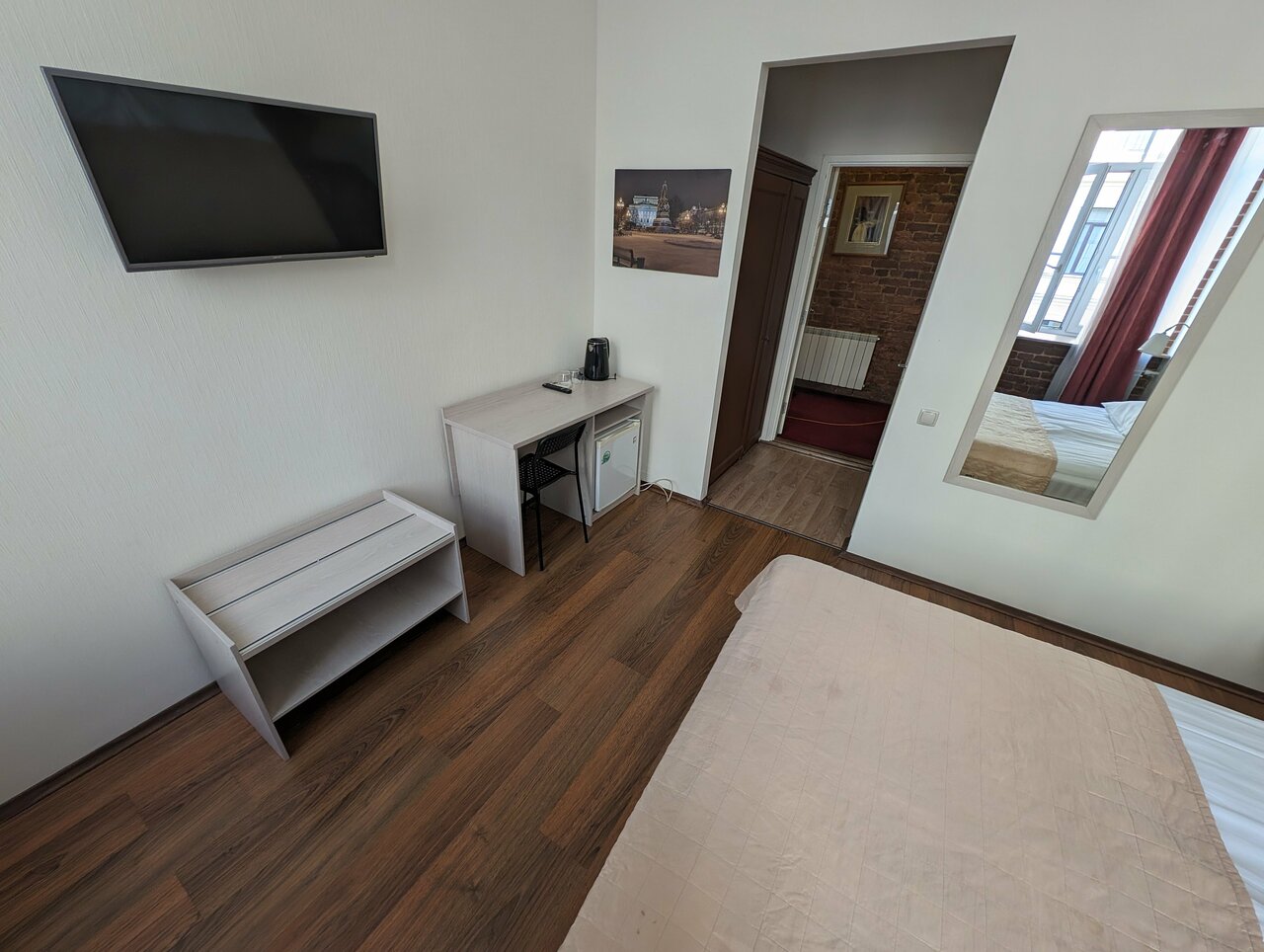 Хороший отель, всё рядом, и до моста и до тур. мест. Номера хорошие за свою цену есть маленькие косяки но их не видно. В номерах есть зеркало во весь рост. Душ ввиде ванны и напор хороший. Нужен номер на 3? Поставим раскладушку. А сама раскладушка надёжная и крепкая. Матрасы на кроватях мягкие и удобные . Окны в пол открываются новые сеток. Оформление комнат простое и не брозкое. Есть кондиционер рабочий и телевизор. В общем для приезда в первый раз очень хорошо, да и для дальнейшего посещения рекомендую.