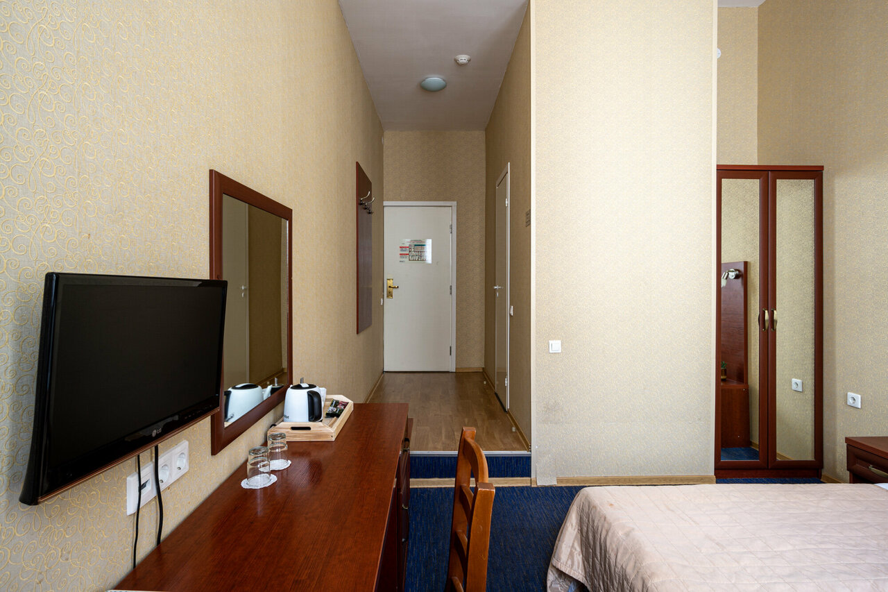 Семейная улучшенная комната станет отличным выбором для тех, кто приехал в Санкт-Петербург с семьей. Она имеет увеличенную площадь и позволяет удобно разместить третьего взрослого на кресле-кровати. Широкий рабочий стол будет большим плюсом для те...