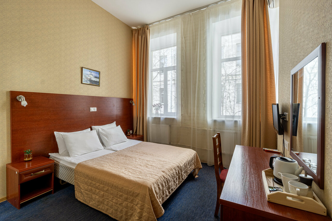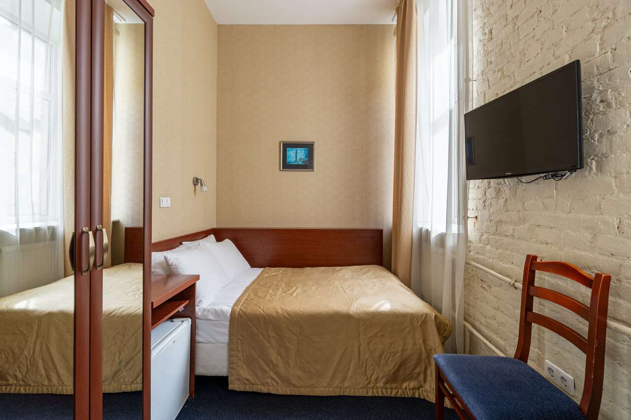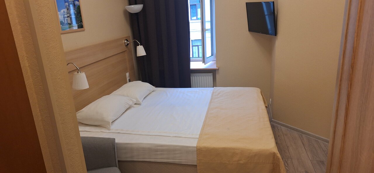 Отличное местоположение! Всё рядом в пределах 5-10 минут, все достопримечательности. До Эрмитажа минут 7, до Казанского собора -3 мин. В номере было чисто, бнлье и полотенца хорошие. У нас был улучшеный стандарт с удобствами в номере. За эту стоимость все превосходно. Минус может быть для тех кому сложно передвигаться, номера на 4 этаже пешком.