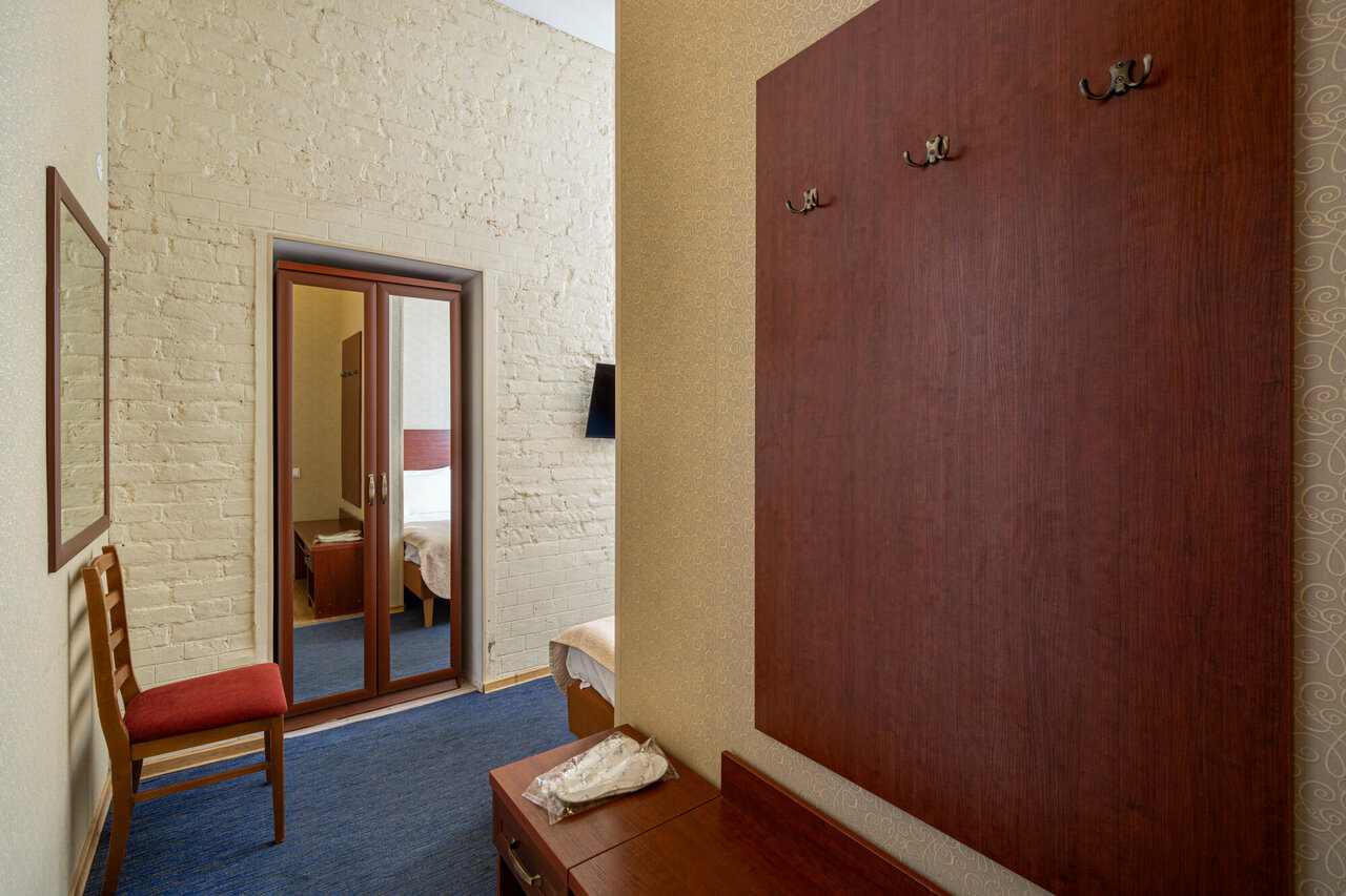 Одноместная комната идеально подходит для деловых путешественников и одиночных туристов. Оформленная в теплых пастельных тонах, она создает атмосферу уюта и комфорта. В комнате есть удобная односпальная кровать, рабочий стол, телевизор и шкаф для ...