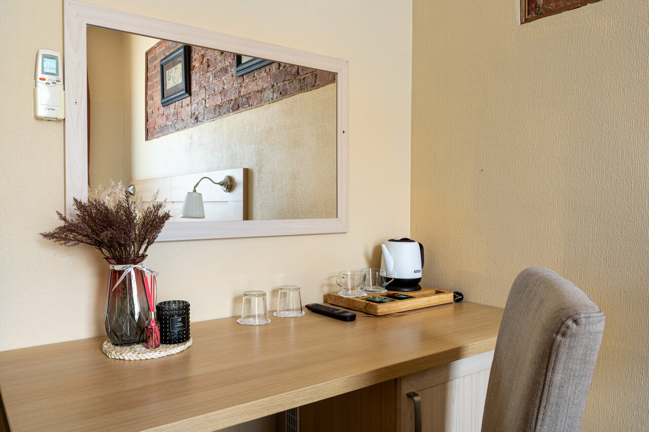 Организованные туристические группы, коллеги, сослуживцы и семьи предпочитают выбирать классическую комнату с двумя раздельными кроватями. В каждой такой комнате установлена система вентиляции или кондиционер.*1800 Цена актуальна на 02.09.24, акт...