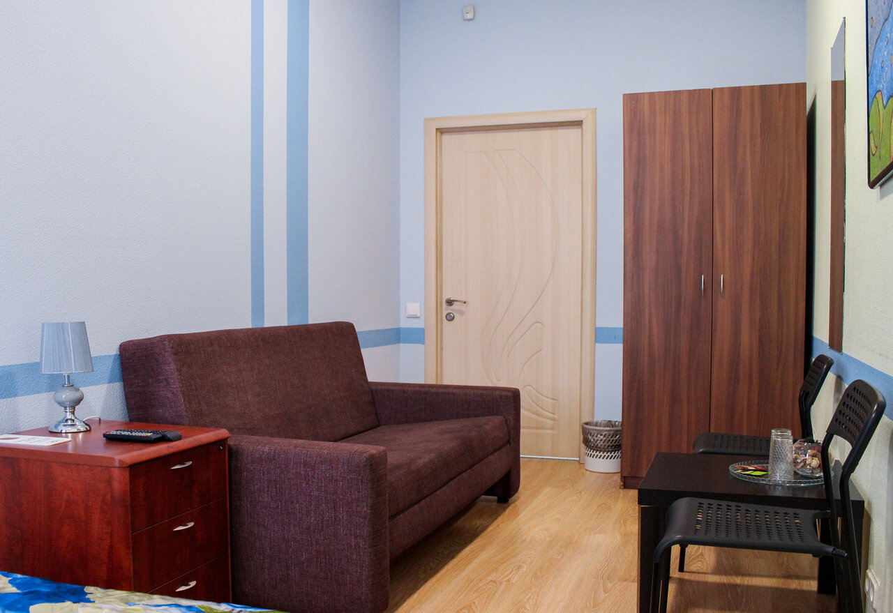 Была в Петербурге 3 дня в командировке. Остановилась в этом мини-отельчике. В целом все понравилось. Номер был простой, но уютный. Все чисто,светло и есть все для первой необходимости.. Мне, по крайней мере, было комфортно. Понравился персонал, вежливый и приятный. Жаль только, что нет номеров с меньшей вместимостью , например 2 человека. Но этим и объясняется, наверное, низкая цена.