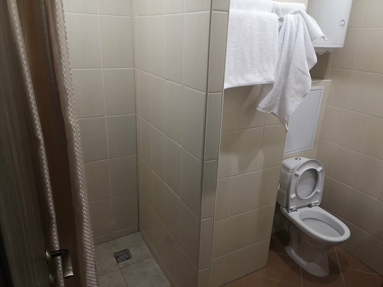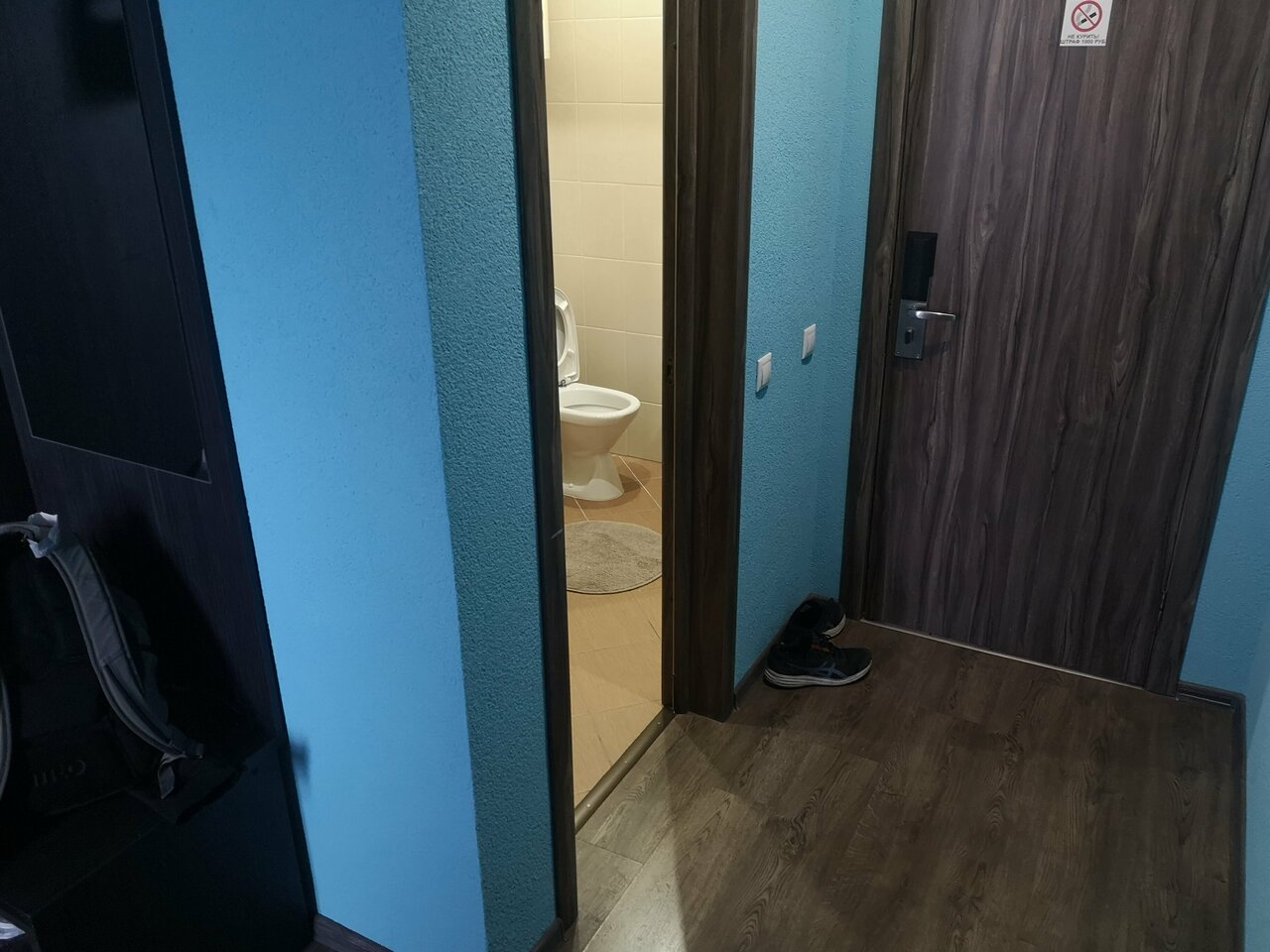 Санузел оказался в общем коридоре на 4 номера, но личный с собственным ключом. Ни разу такого не встречал. Было жарко, а кондиционера не оказалось. Только вентилятор. Завтрак шведский и очень не плох. За него 5. Таксисты путаются — надо указывать подъезд #2.
