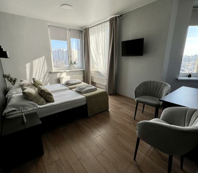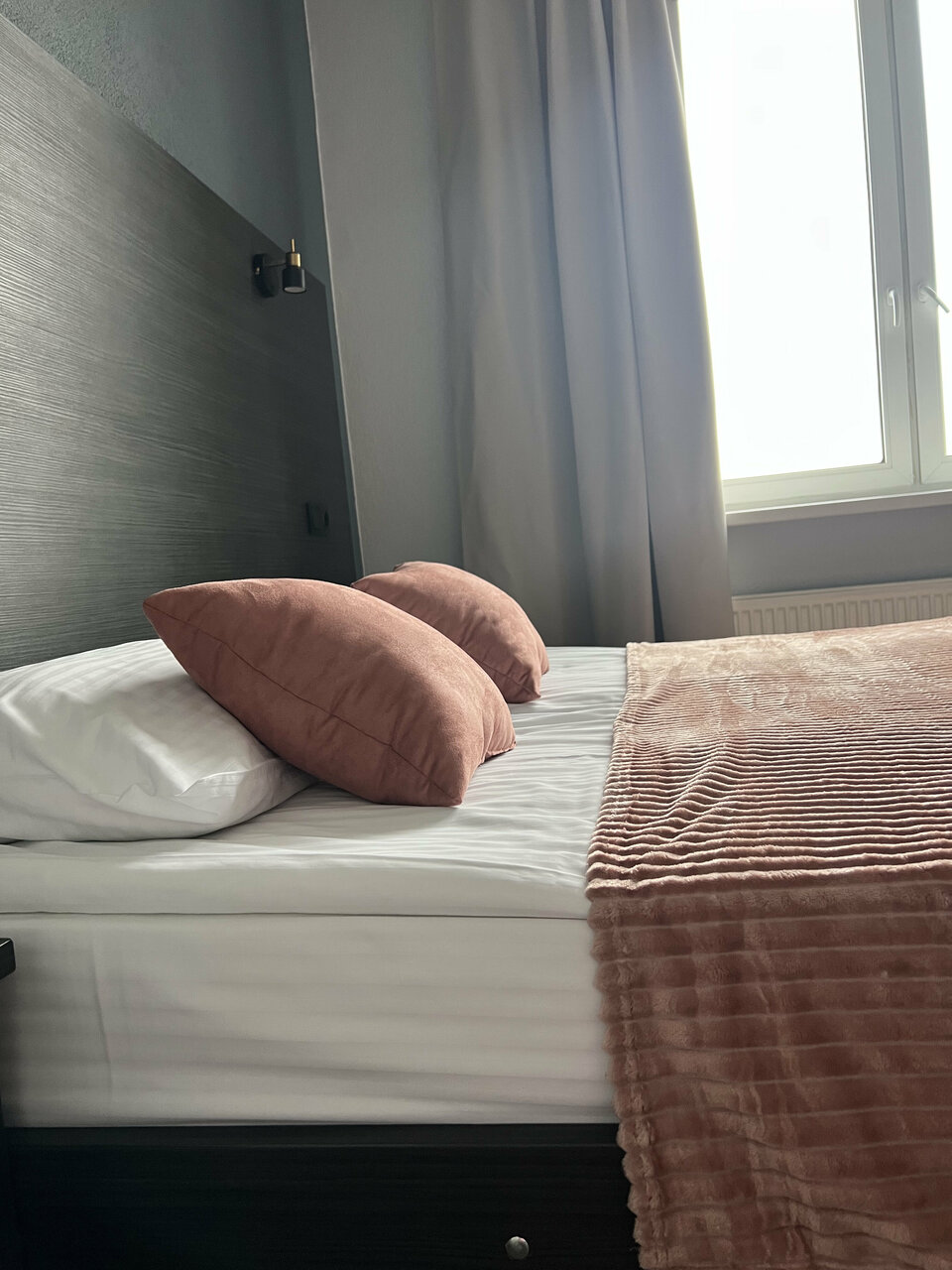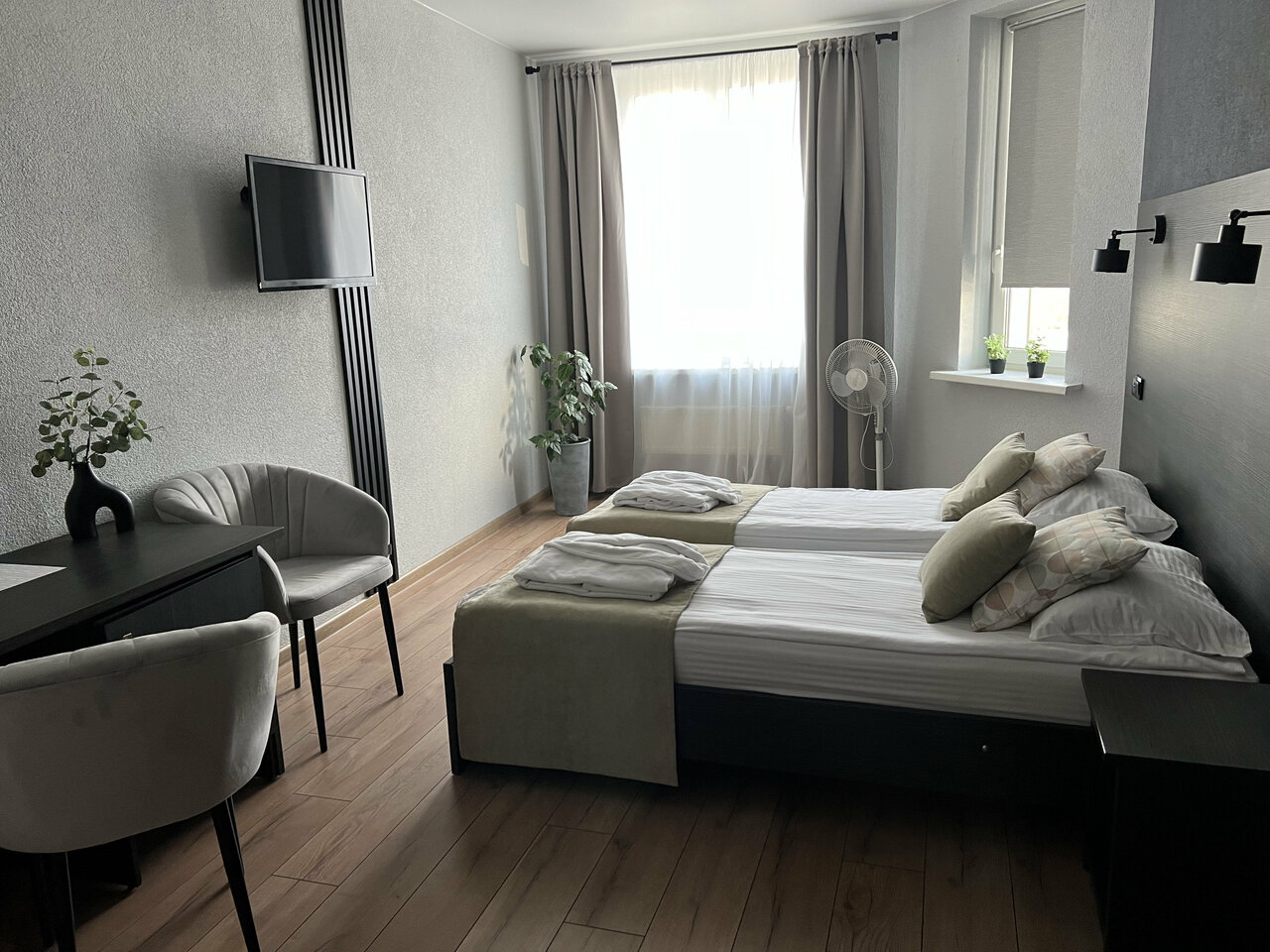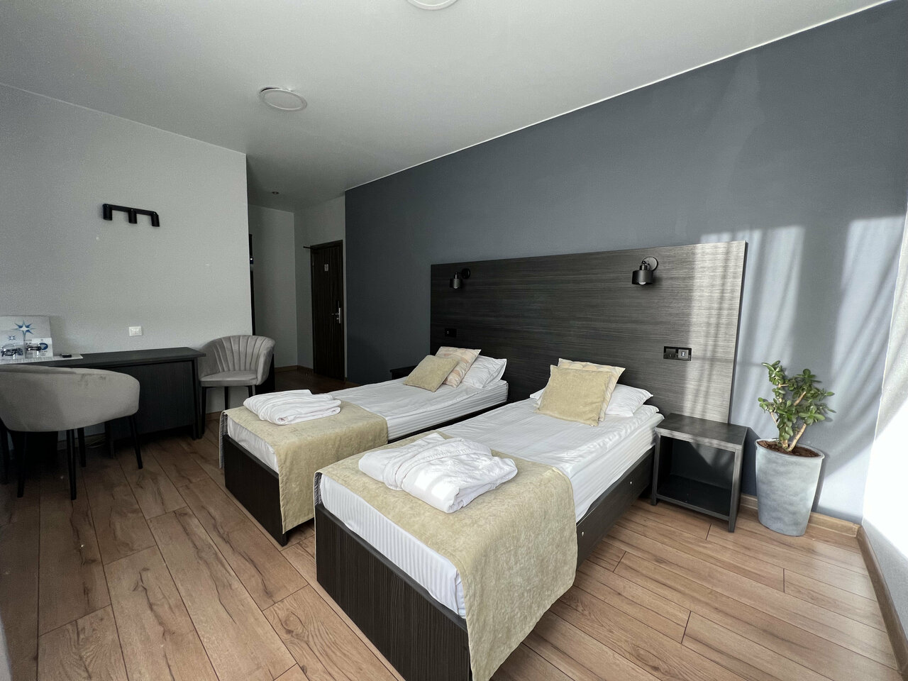 Двухместный номер «Комфорт TWIN» мини-гостиницы 'Космос' имеет площадь большего размера, стилистическое оформление, а также отличается повышенным уровнем комфорта и площадью.В этом номере есть 2 раздельные кровати и туалет находится в номере! В сто