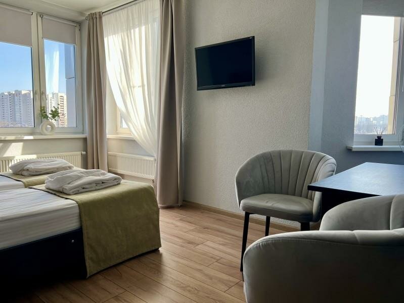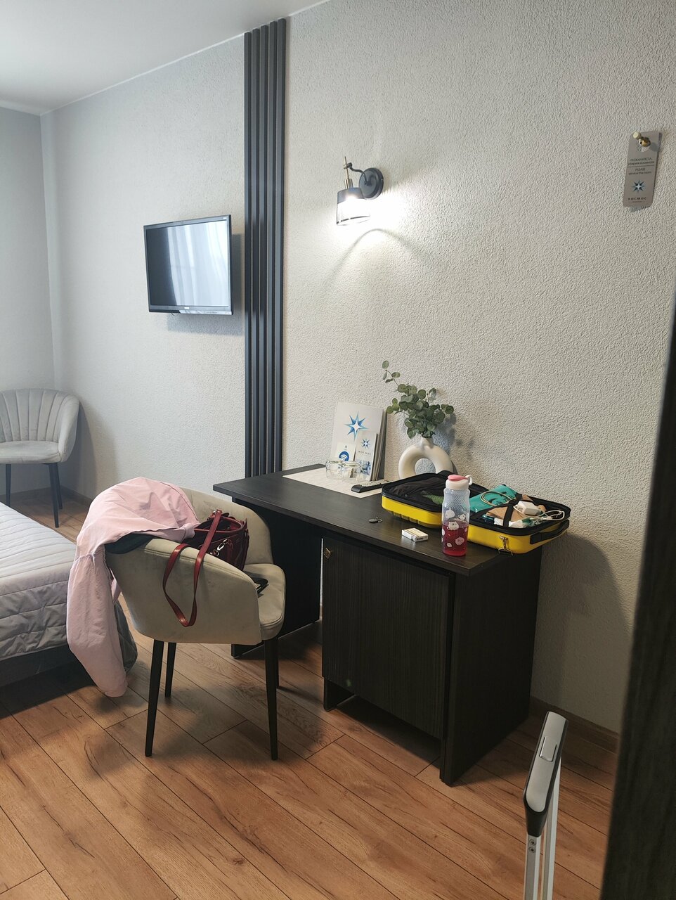 Очень хорошая гостиница. Номера чистые, завтраки вкусные. В номере есть всё необходимое для комфортного проживания. Телевизор, холодильник, письменный стол, WiFi.