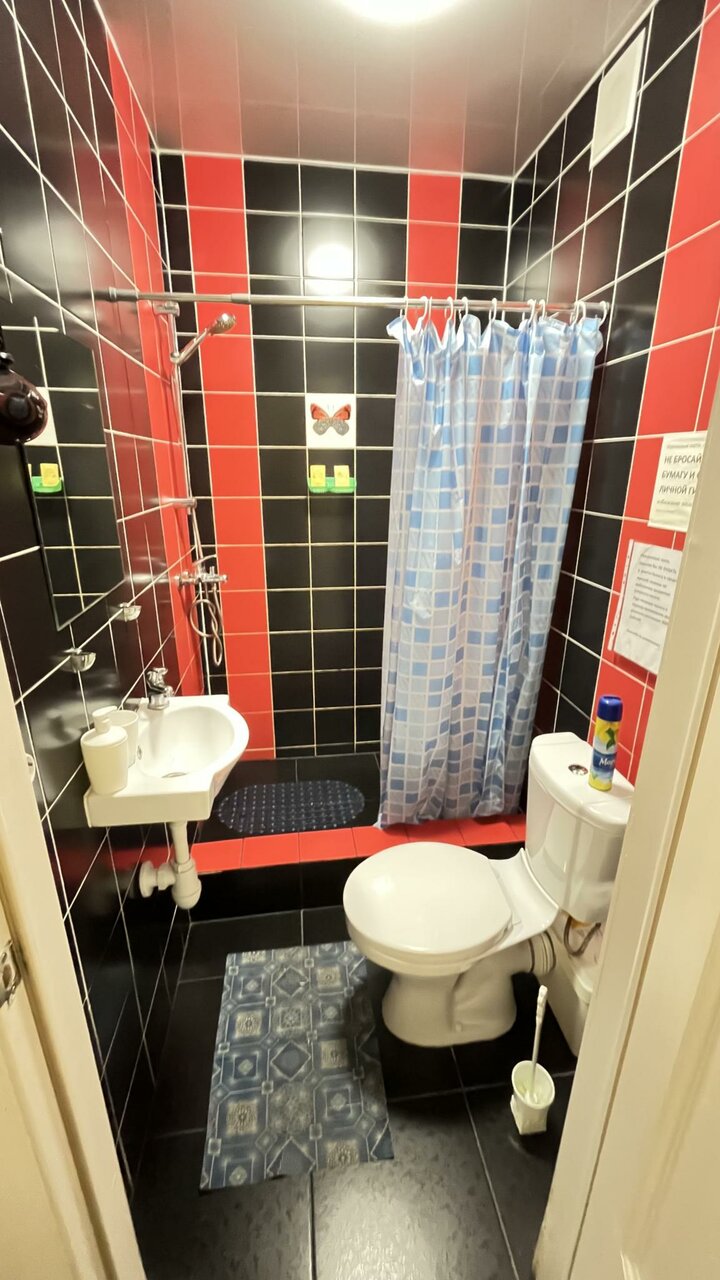 Останавливались в данном отеле в июне на 3 дня. Больше не остановлюсь! Из плюсов: есть общая кухня с посудой, утварью, плита, микроволновка, холодильник, столики и стойка, чтобы поесть не в номере. Стол и стулья, санузел и телевизор в номере есть. Из минусов: цокольный этаж (как многие в Питере), ТАРАКАНЫ в номере, всегда открыто окно (на уровне асфальта), сетки на окне нет, залетают комары (фумигатор есть, но пластина использованная, не работает), в номере влажно, кровать жутко скрипит, когда только садишься на неё, проваливается, будто вот-вот сломается, мебель с поломками (ручка у шкафа сломана, передняя панель тумбочки отваливается), из банных принадлежностей 4 шт. геля для душа (на двоих, естественно), шампуня нет. Есть вентилятор в номере. На фото номера выглядят большими, по факту — не так. Всё очень компактно. Для одной — двух ночей подойдёт (если не смущают тараканы).
