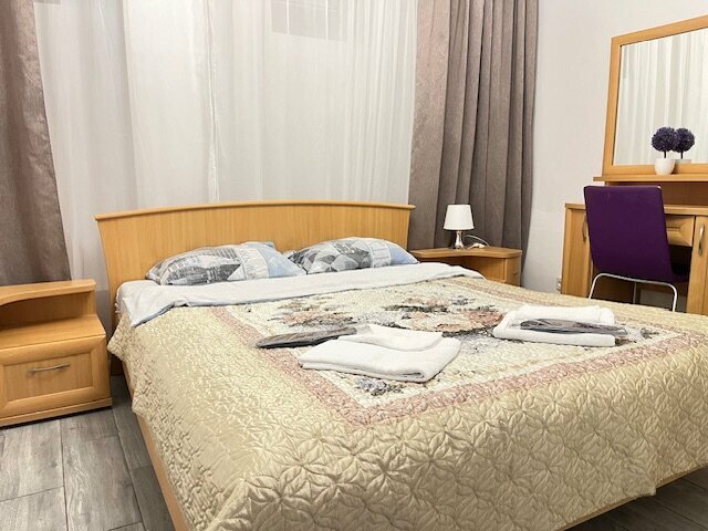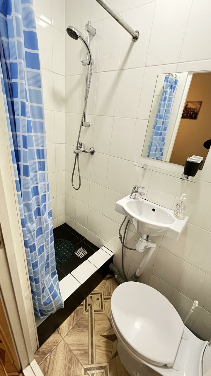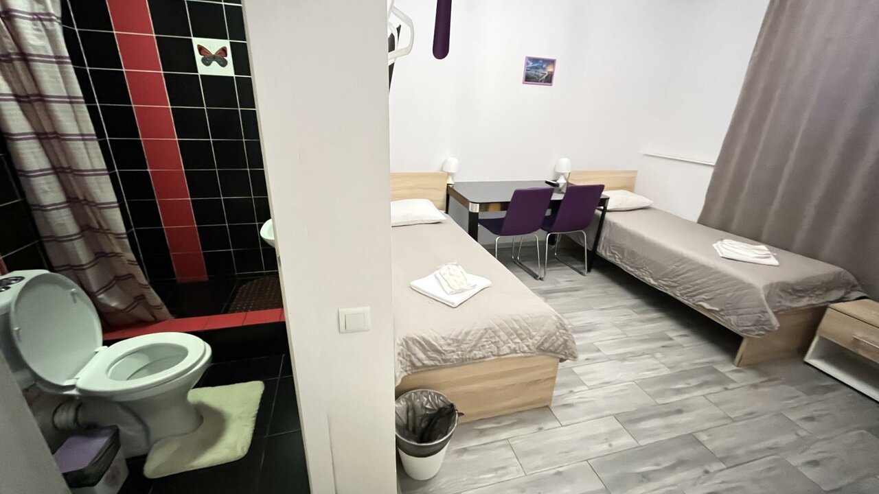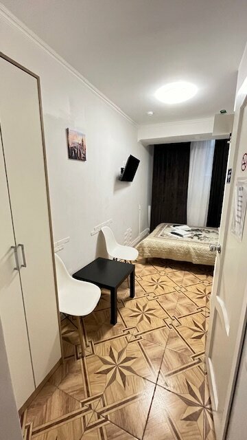 Переночевать 1-2 ночи — сойдет за такую пролетарскую цену, но сразу опишу плюсы и минусы. а вы для себя решайте подходит вам или нет. Плюсы — расположение в центре, недалеко пешком от метро площадь Восстания и Маяковского. Вокруг много баров и ресторанов на любой вкус. Круглосуточная стойка рецепшена (правда она находится в хостеле рядом, это одна организация с миниотелем) Есть неплохая оборудованная кухня. с холодильником. мойкой, микроволновкой, столиками и столовыми приборами. Мы пользовались. Есть утюг и гладильная доска. А теперь минусы: - очень сильный сапах сырости в туалете - в душевой кабинке плохо уходит вода - до окна не достать т.к. оно высоко и в глубоком простенке под углом, не смогли открыть шире, чтобы проветривать - ночью летали стаи комаров - не очень заинтересованные сотрудники на рецепшене, оплату по терминалу не проводят просят наличные, или перевод на карту или сбп, а нам нужны были чеки для отчетности.