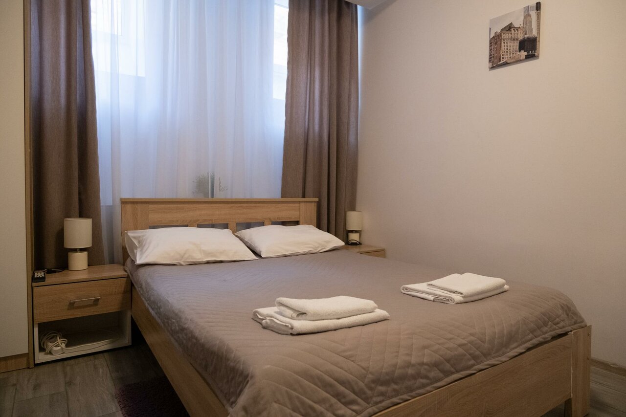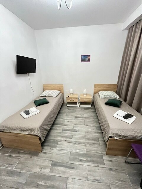 В данном отеле мы с супругом провели 4 дня Все продумано до мелочей: обогреватель, губки для чистки обуви на входе, резиновый коврик в душе. На кухне есть все удобства:чайник, фильтр, микроволновка, мультиварка и обеденная зона. Нам понравилось. Вернемся ли мы еще раз сюда? Скорее, да. Посоветуем ли отель-Да Единственный маленький минус, это то, что шумит насос, но когда ты проходишь десятки киллометров и заваливаешься без ног в кровать, то этот шум не замечаешь. До площади Восстания 10 минут пешком Также с отелем есть крутой бар TWIN PEAKS CRAFT BEER (Пивная лавка) , где можно выпить вкусного крафтового пива и поиграть в настольный футбол.