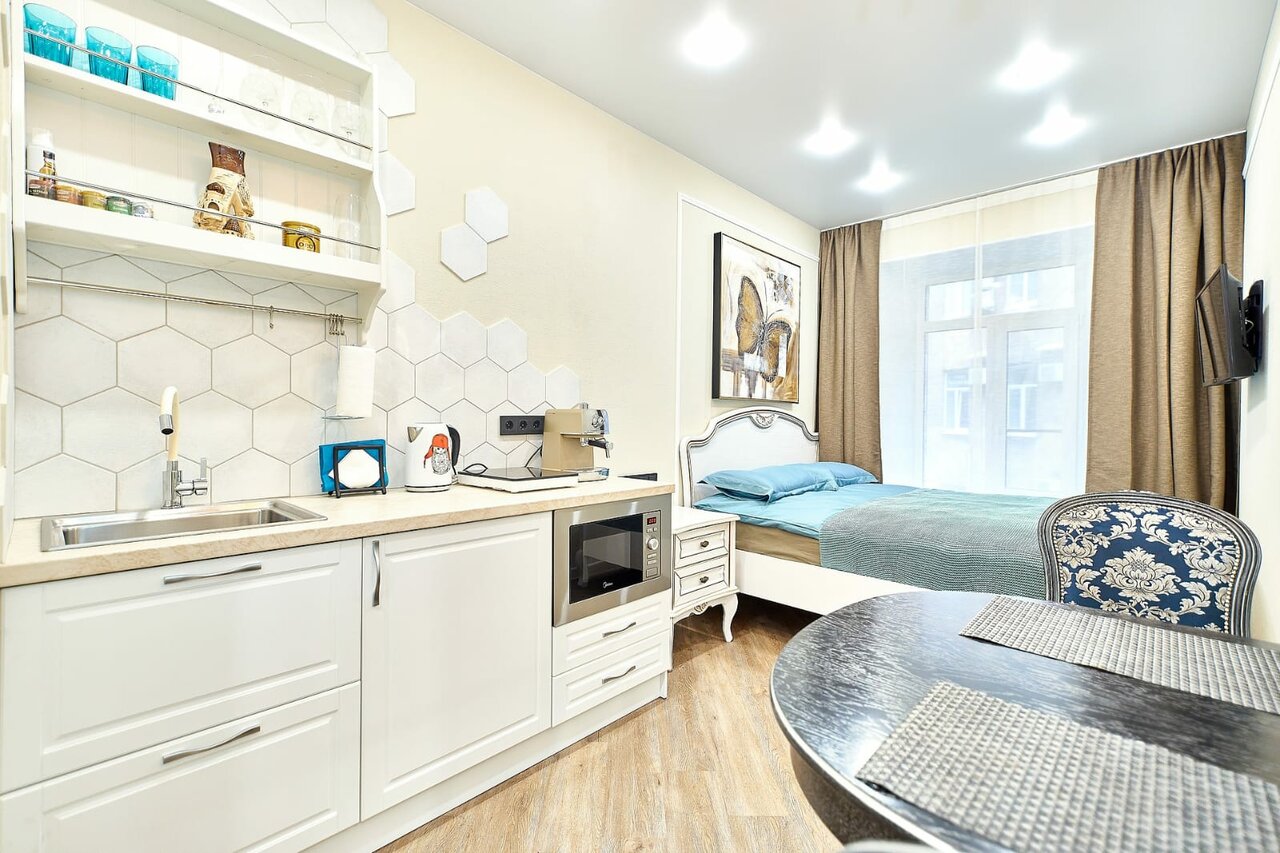 Выбрала студию по рекомендации знакомых и ни на минуту не пожалела о своем выборе.Понравилось все начинаю от системы заселения,бронирования до инерьера самой студии.Все соответствовало описанию на сайте.Уютная и чистая студия,со свежим и аккуратным ремонтом.В номере было все и даже больше для комфортного проживания.Очень тихо в самой студии,прекрасная шумоизоляция и окна выходили в спокойный двор.В номере были для гигиены,шампунь,гель для душа,тапочки,полотенце,постельное белье,кофемашина и кофе.Электрич.плитка с необходимой посудой и даже масло для приготовления.Есть комната для стирки своих вещей и их сушки.и утюг.Все это бесплатно и входило в стоимость номера.Я с удовольствием вернусь еще в этот мини-отель.