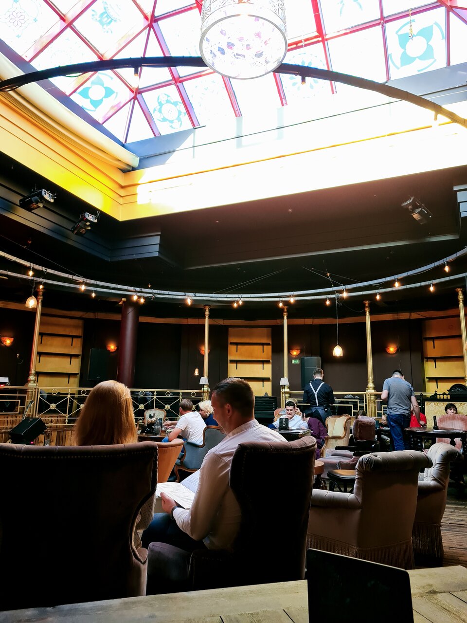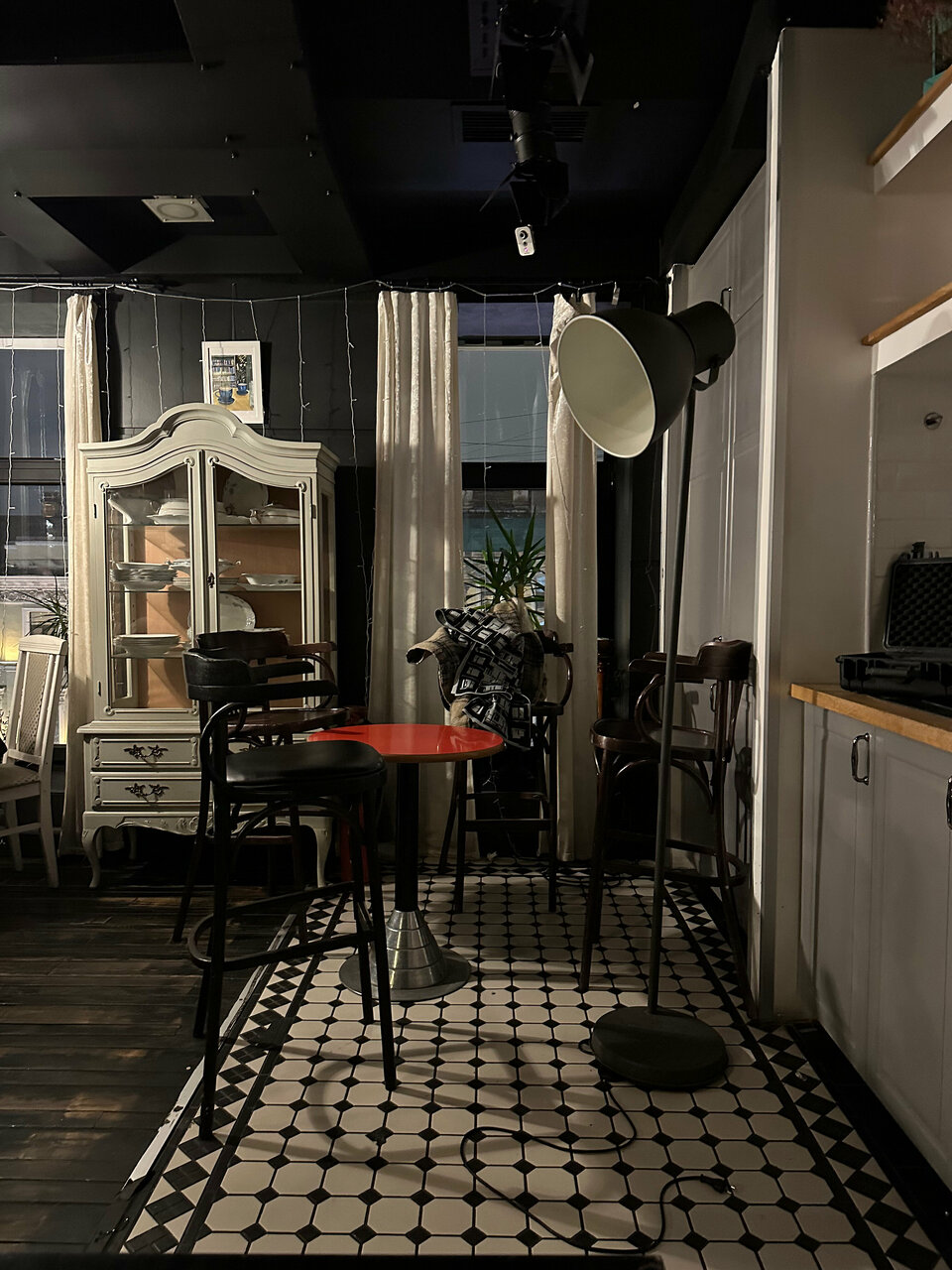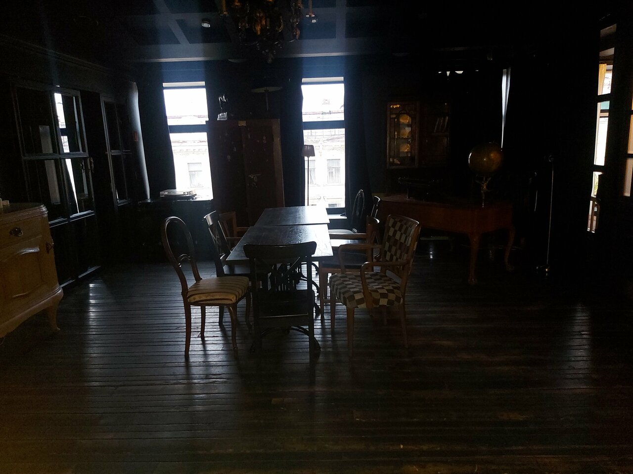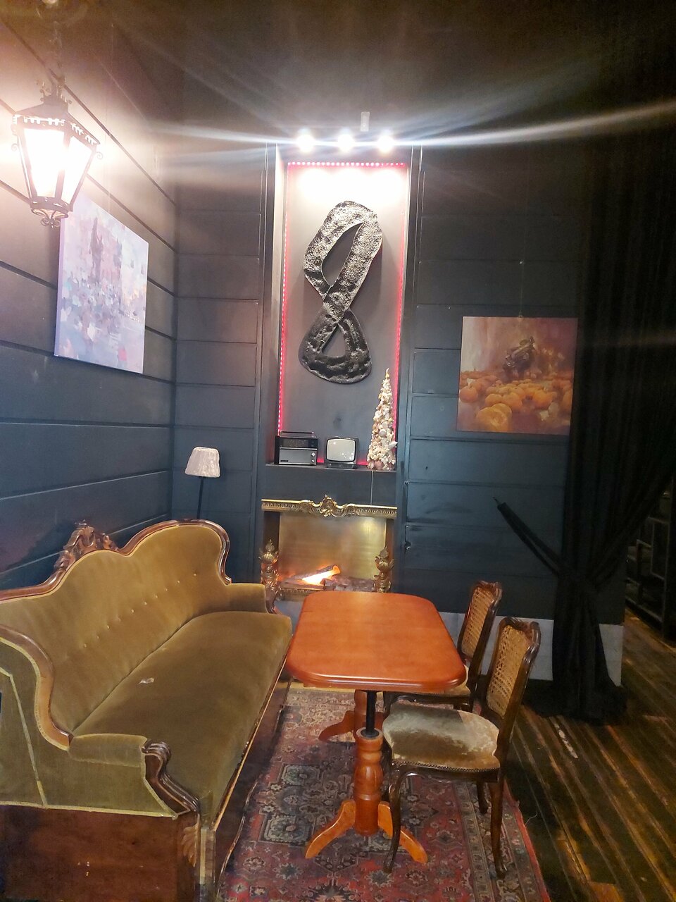 Классное место! Зайти/Найти вход может только человек, который идет туда целенаправленно. Тк это реально вход в квартиру… помещение ооочень большое и стильное. Есть 2 зала: один с окнами на улицу, другой с витражной крышей.. Если к вам кто-то приехал в гости, то сводите его туда. Такое ‘Питерское место'(и квест, и атмосфера). Очень понравился чай с травами/ягодами