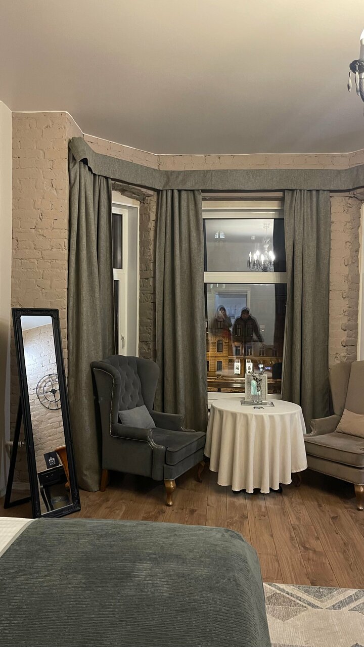 Очень красивая гостиница. Номер люкс эркером и видом на Фонтанку — просто бомба!!! Всем рекомендую ради атмосферных фоточек и романтических выходных.