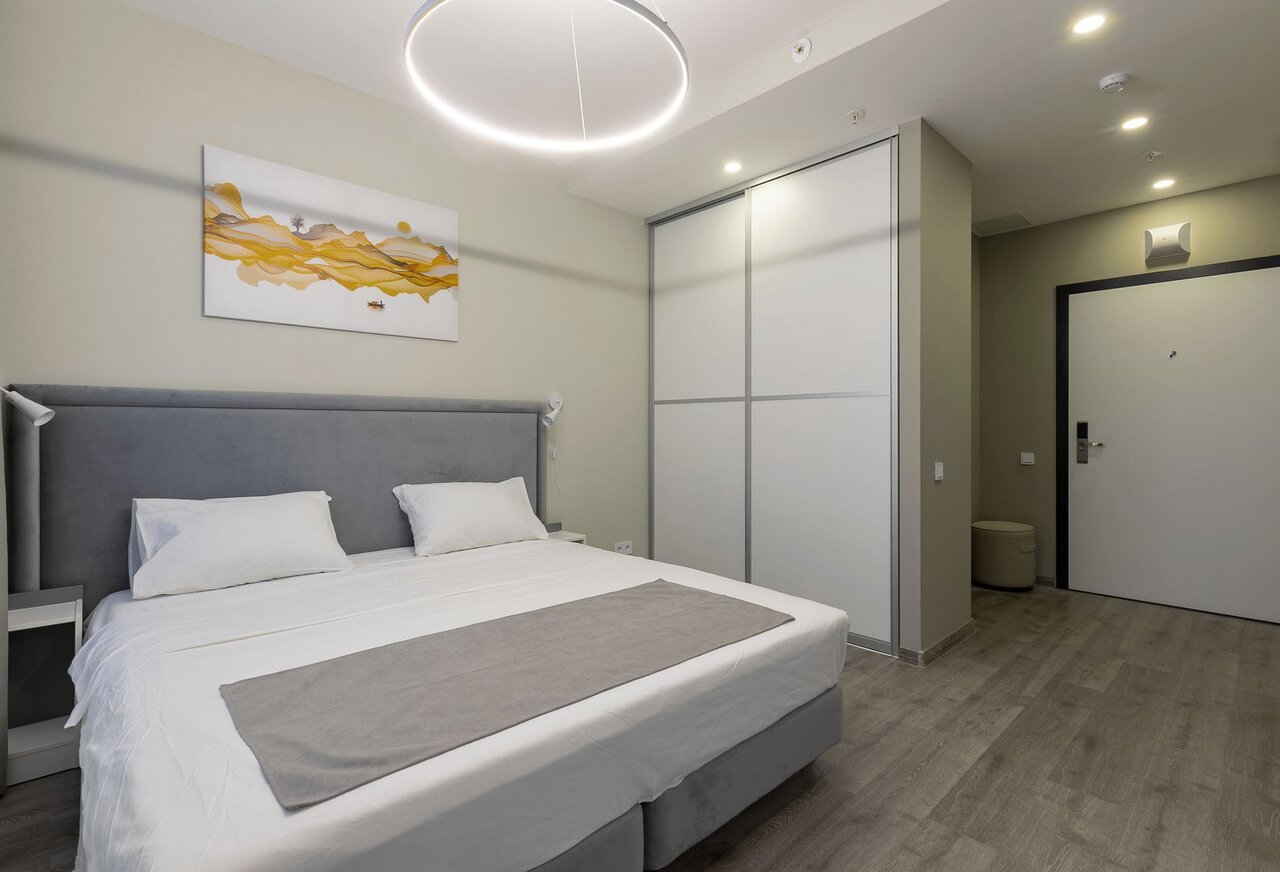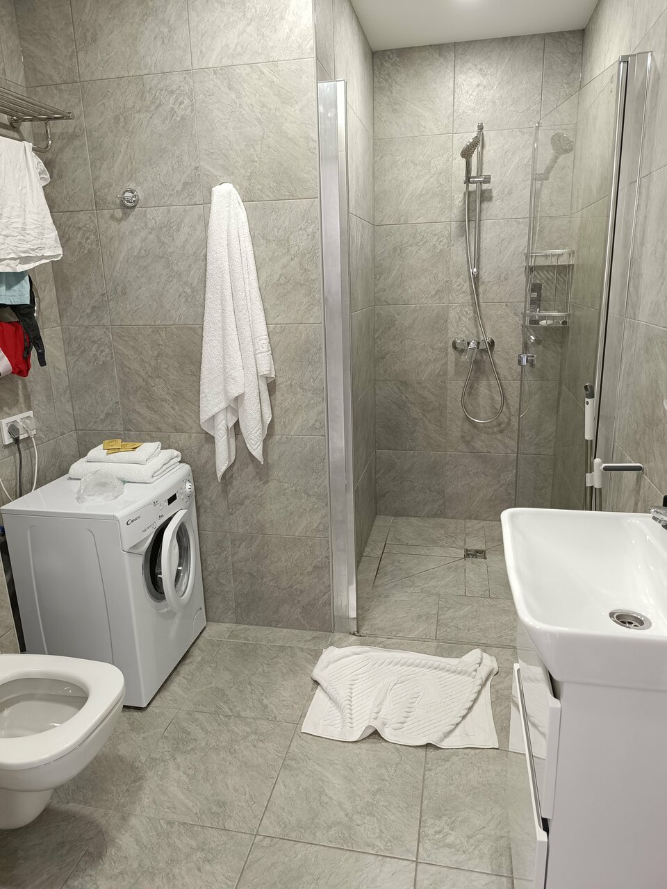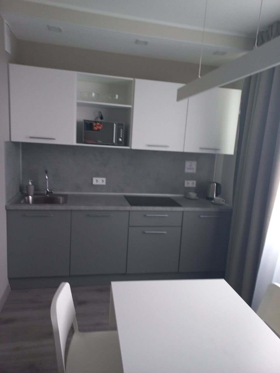 Отличные апартаменты. Всё что нужно в шаговой доступности. Единственный минус это было прохладно, так как отопление ещё не включено.