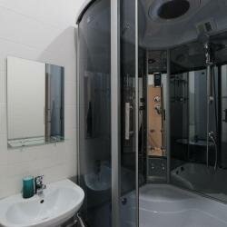 Приглашать можно кого угодно, никто на входе не остановит. В номерах есть плита, можно готовить. Душевая только очень маленькая.