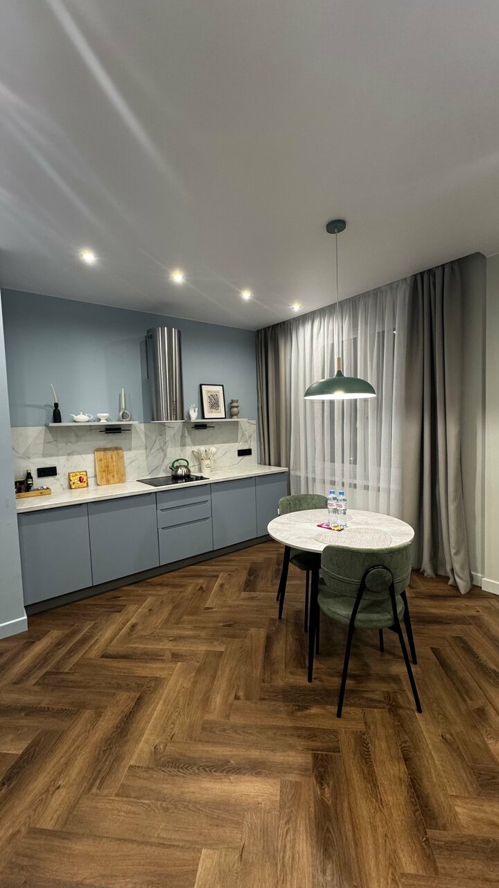 Хочу поделиться своим ощущением от проживания в этих апартаментах. 3 дня как в раю! Все для людей! Все новенькое, все блестит, уютно, но в тоже время просто шикарно, дизайнеры явно постарались. Кухня как во дворце, огромная и вся техника новая и встроенная. Я не хотела уезжать ( В спальне огромный шкаф на всю стену, большой санузел с тропическим душем и ванна, куча шкафчиков, гардеробная. Очень рекомендую. Смело приезжайте, не пожалеете!