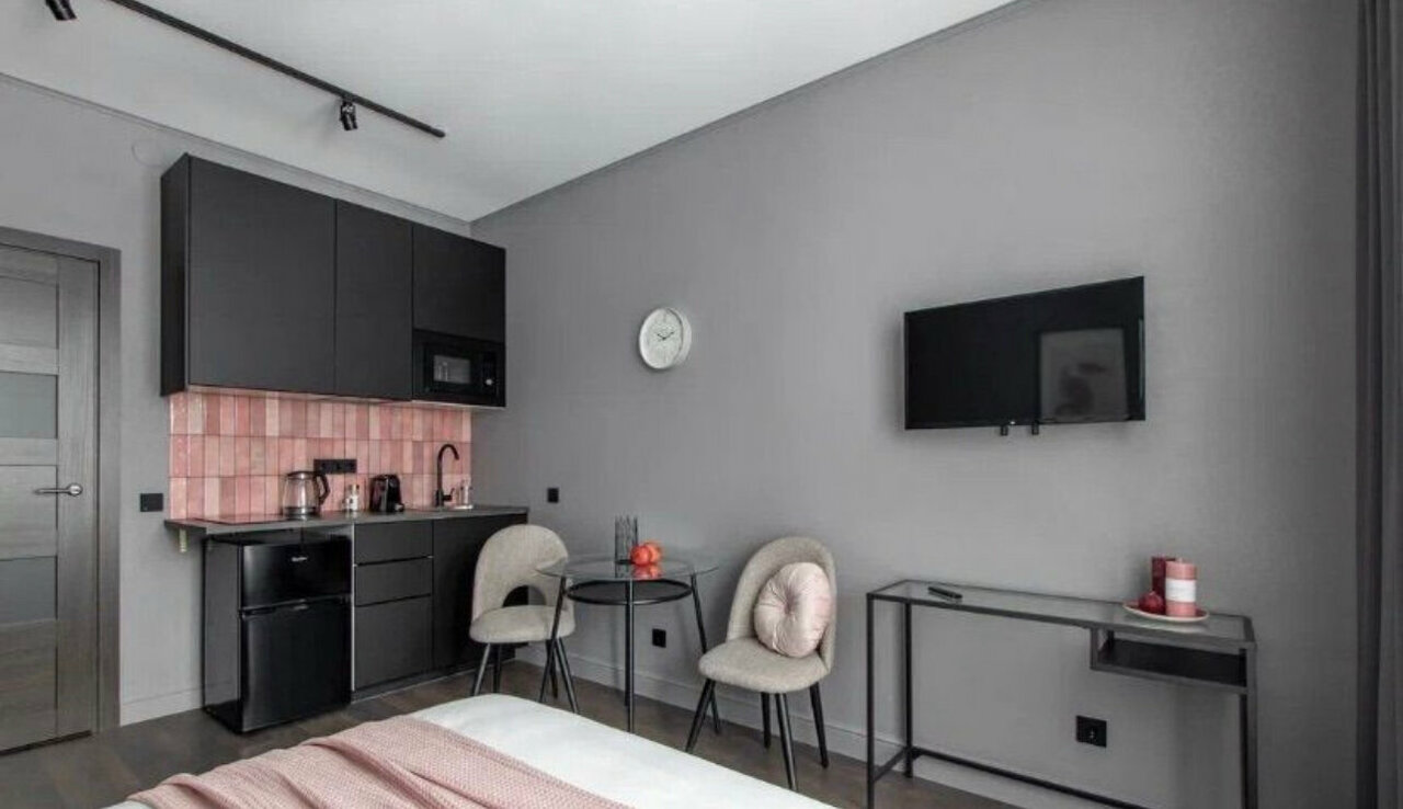 ул. Киевская 5/6, ст. м. Фрунзенская Студия 29 кв. м. для 1-2 гостей. Бесконтактный заезд 24/7. Отчетные документы.