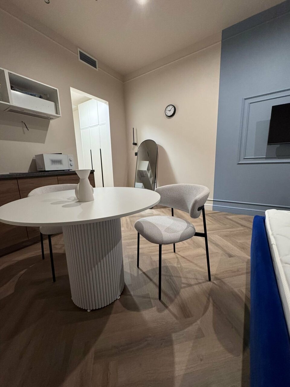 Посчастливилось здесь проживать почти неделю. Безусловно шикарное месторасположение! Вид на Неву , уютный закрытый двор, тишина и безопасность! Классная новая студия, все продумано до мелочей, ничего лишнего, но и одновременно очень уютно. Сочное синее изголовье кровати и черные стеклопакеты мне реально понравились! Придраться не к чему. Все безупречно! Сервис, чистота, уют, текстиль, наполнение. Одни плюсы, минусов не наблюдала. Однозначно рекомендую!