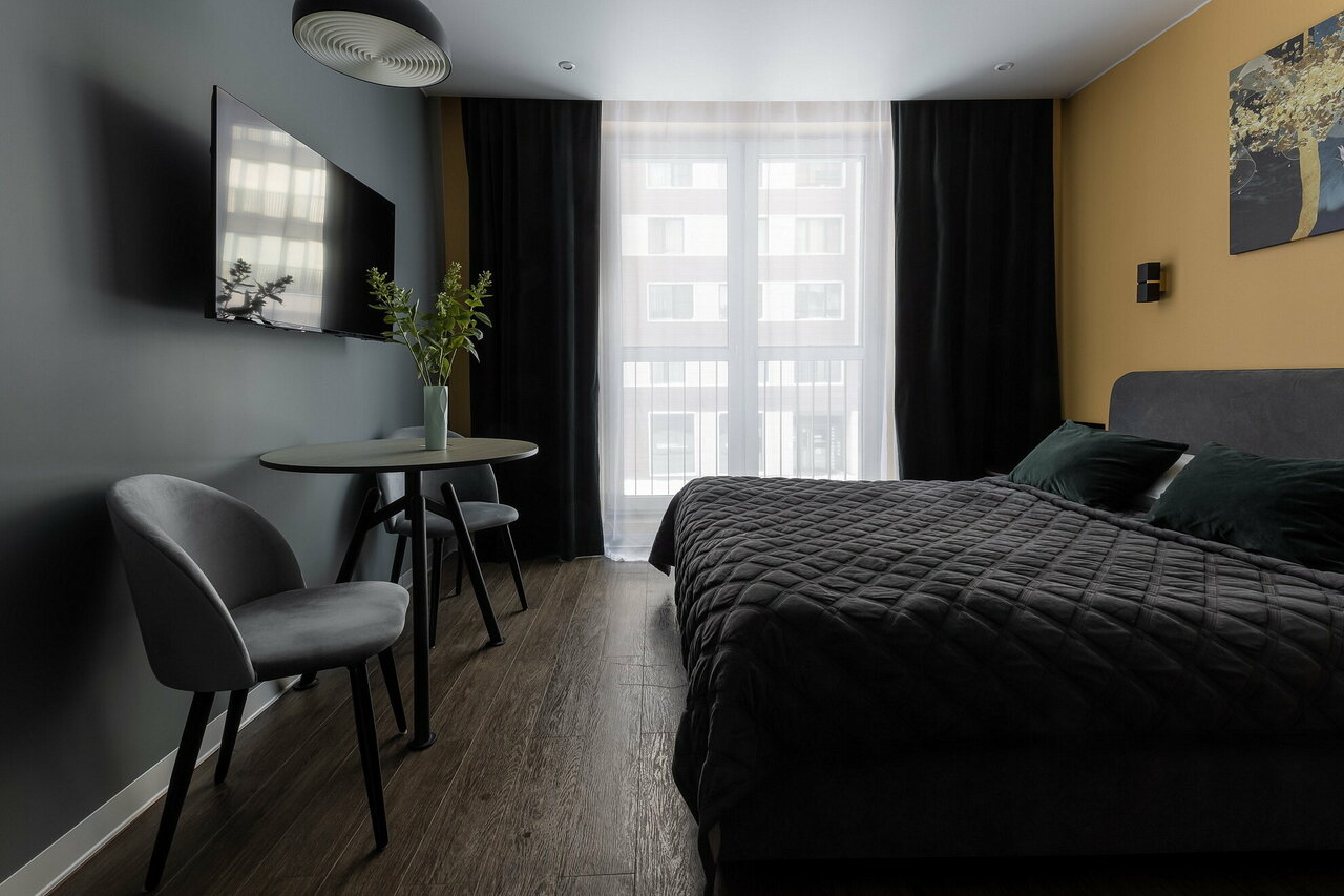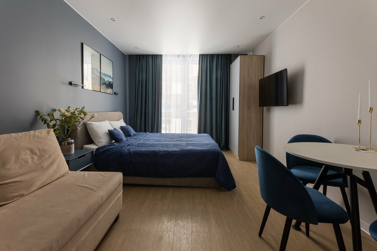 Жили в номере BLUE 2 суток. в номере есть чисто, современный ремонт, комфортное пространство для двоих, всё необходимое есть (кондиционер, телевизор, кухня) . Расположена в шаговой доступности от Московского вокзала, в жк есть кафе, рестораны, магазины. Приехали утром, оставили вещи и пошли гулять, заселились уже позже. Собственники на связи.