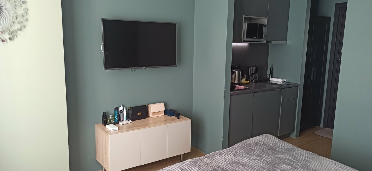 Удобное расположение, чистенько, обратная связь и поддержка на уровне. Небольшие уютные апартаменты, нам все очень понравилось. Вокруг много магазинов, все в доступности. Интернет тоже хороший))