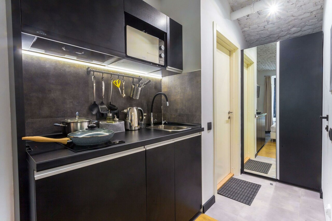 - Наличие кухни и бытовой техники (кофемашина, плита).