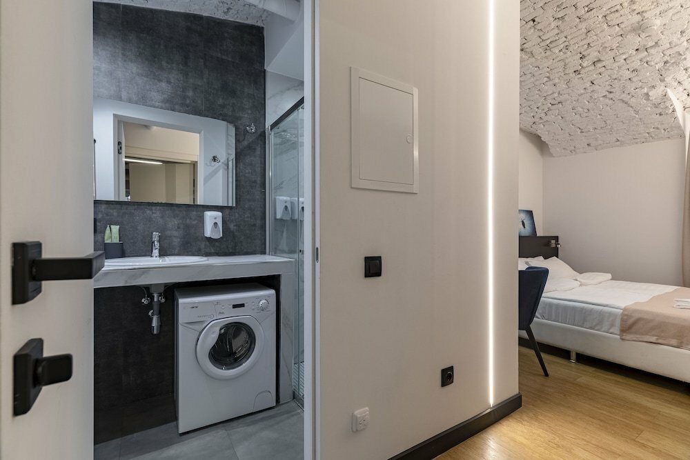 Прожили 5 дней. Приехали в свадебное путешествие. Нас ждала бутылка вкусного вина. Чисто, уютно. Можно оставить багаж до и после выезда. В номере есть все: фен хороший, стиральная машина, гигиенические принадлежности, тапочки, полотенца. Уборка каждый день. Только постельное ни разу не поменяли. Апартаменты в лучшем месте. Советую всем парам. Внимательное отношение адмистратора. Спасибо