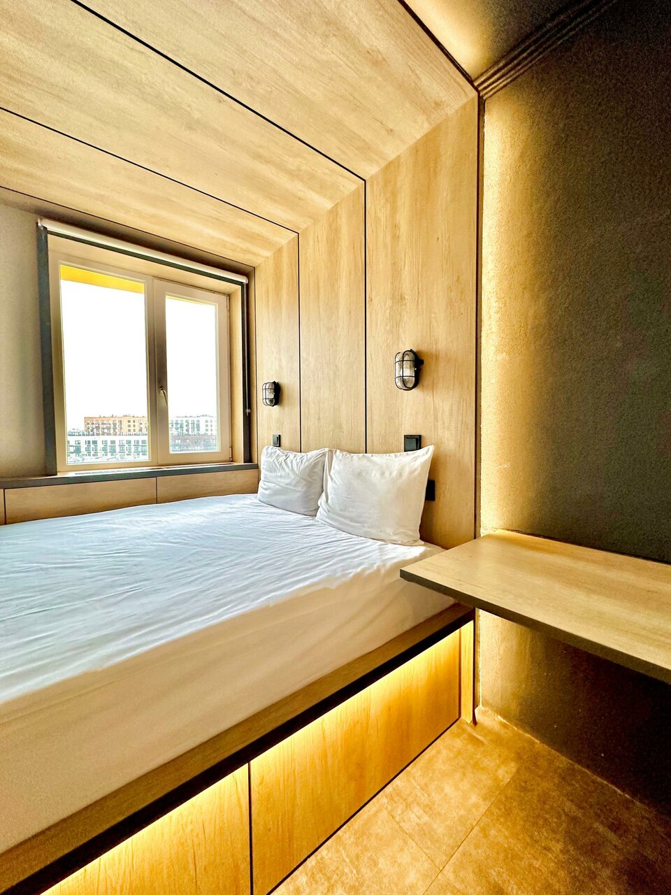 Отель молодежный, а в следствие этого, видимо, отношение к гостям довольно посредственное. Уборку в номере за неделю проживания не делали ни разу, совсем не заходили, не меняли полотенец, белья уж тем более. Эргономика номера тоже оставляет желать лучшего. Номер на двоих крайне маленький. Завтрак где то на 3+. На заселении тоже все как то долго.
