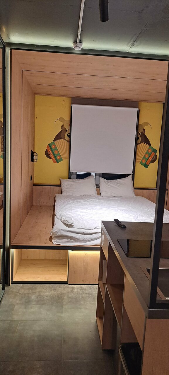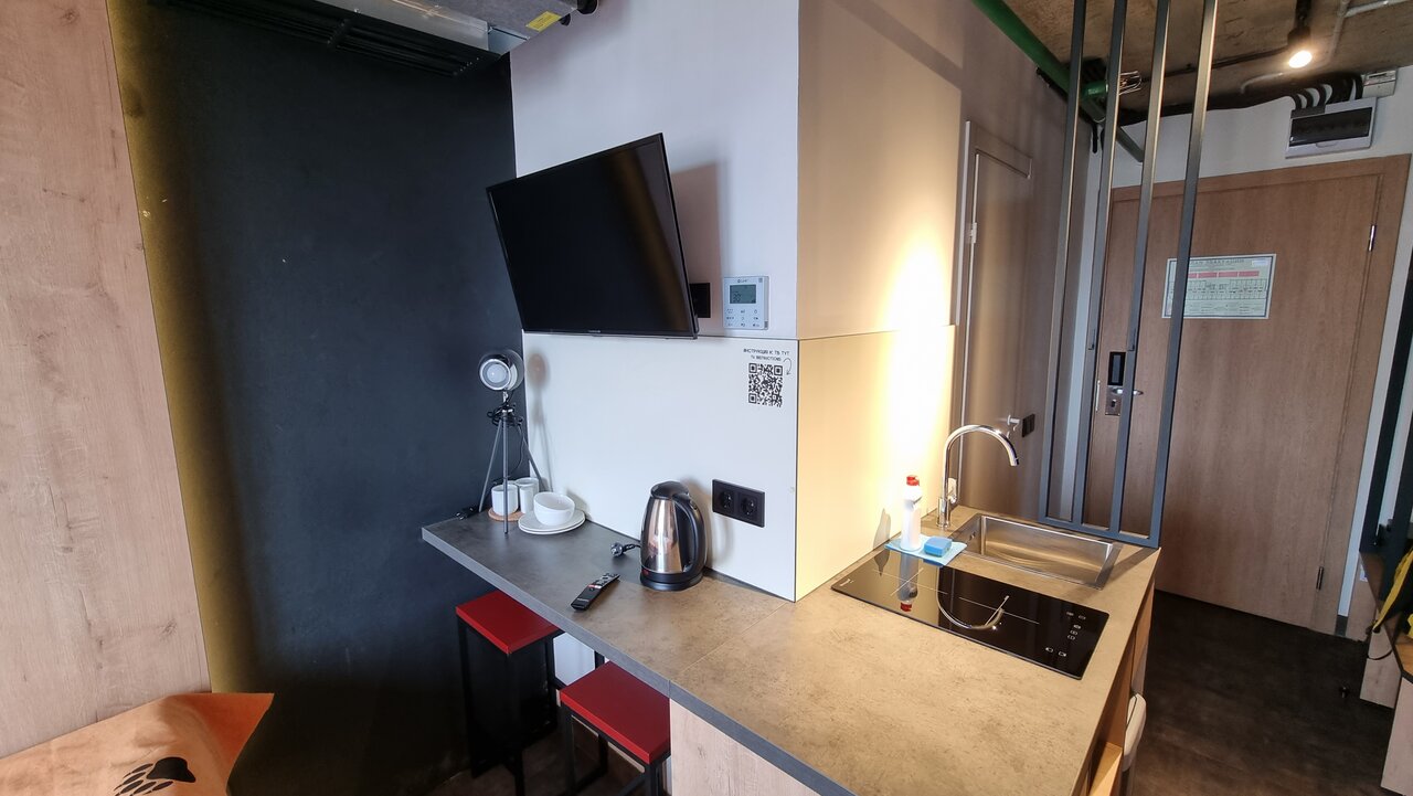 Чистый номер, современный ремонт. Достаточно удобно это бесконтактное бронирование. За что снимаю 1 звезду, это вход: 1) заселялись ночью, на 1 этаже бар-паб, стоят ребята пьяные и неприятно смотрящие. 2) попасть нужно лифтом, а чтобы зайти к лифту, нужно либо успеть с другими жителями, либо кого-то просить открыть (в нашем случае просто охранника открыть магнитную дверь). Сказать, что вернемся не могу, не совсем комфортно описанное выше, есть варианты по той же цене и без проблем со входом, но сами номера неплохие. Брать или нет, решать вам.