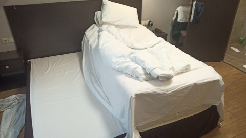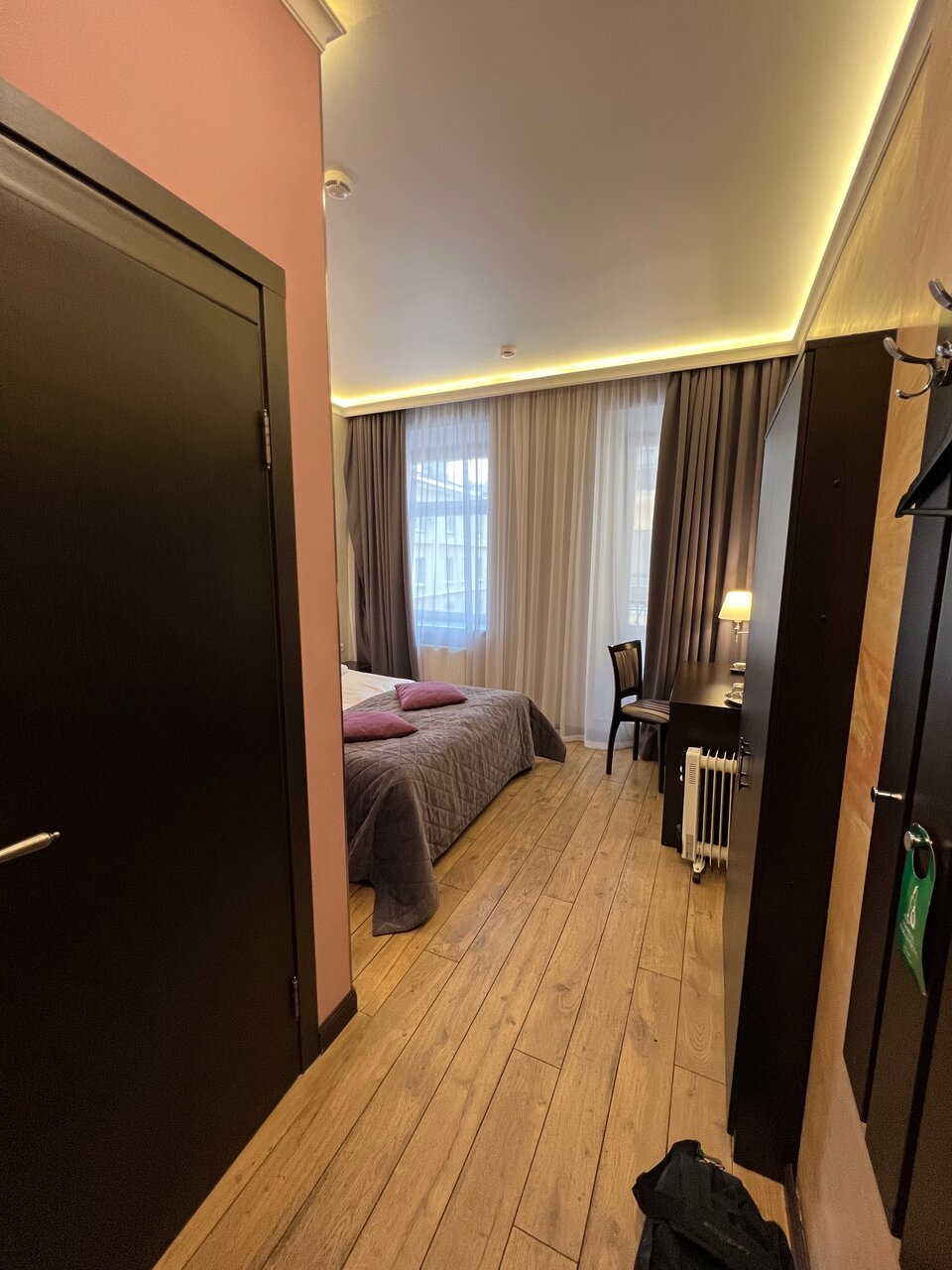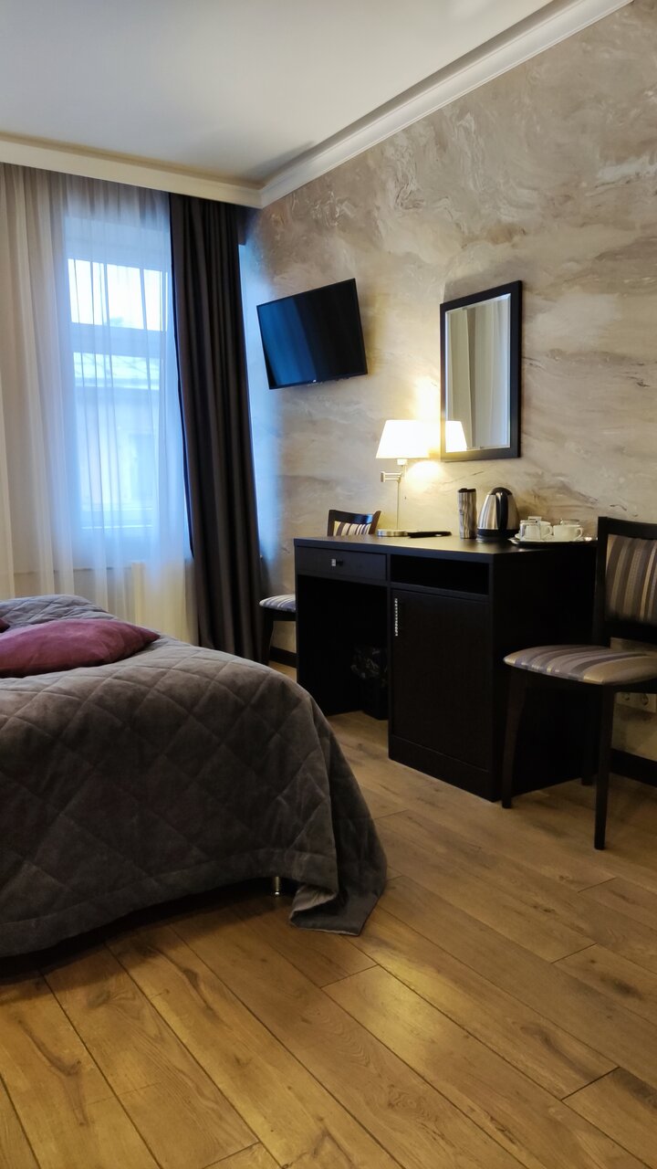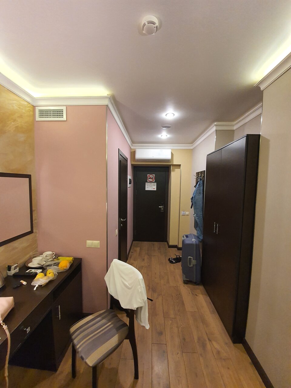 Три звезды это много))) Номер стандарт я приобрел дороже чем люкс в этой же гостинице. Возможно островок берет 50% комиссию. Честно говоря у меня в квартире прихожая больше чем весь номер в гостинице)) тело в горизонтальном положении на фото. Ноги почти у стены. Завтрак написано включен, но почему то я его отдельно оплатил возможно нужно дважды оплачивать конечно, но получается как то не серьезно. Итог 2 дня 14500 с завтраками за номер стандарт. Дата была с 5 по 7 января 2024