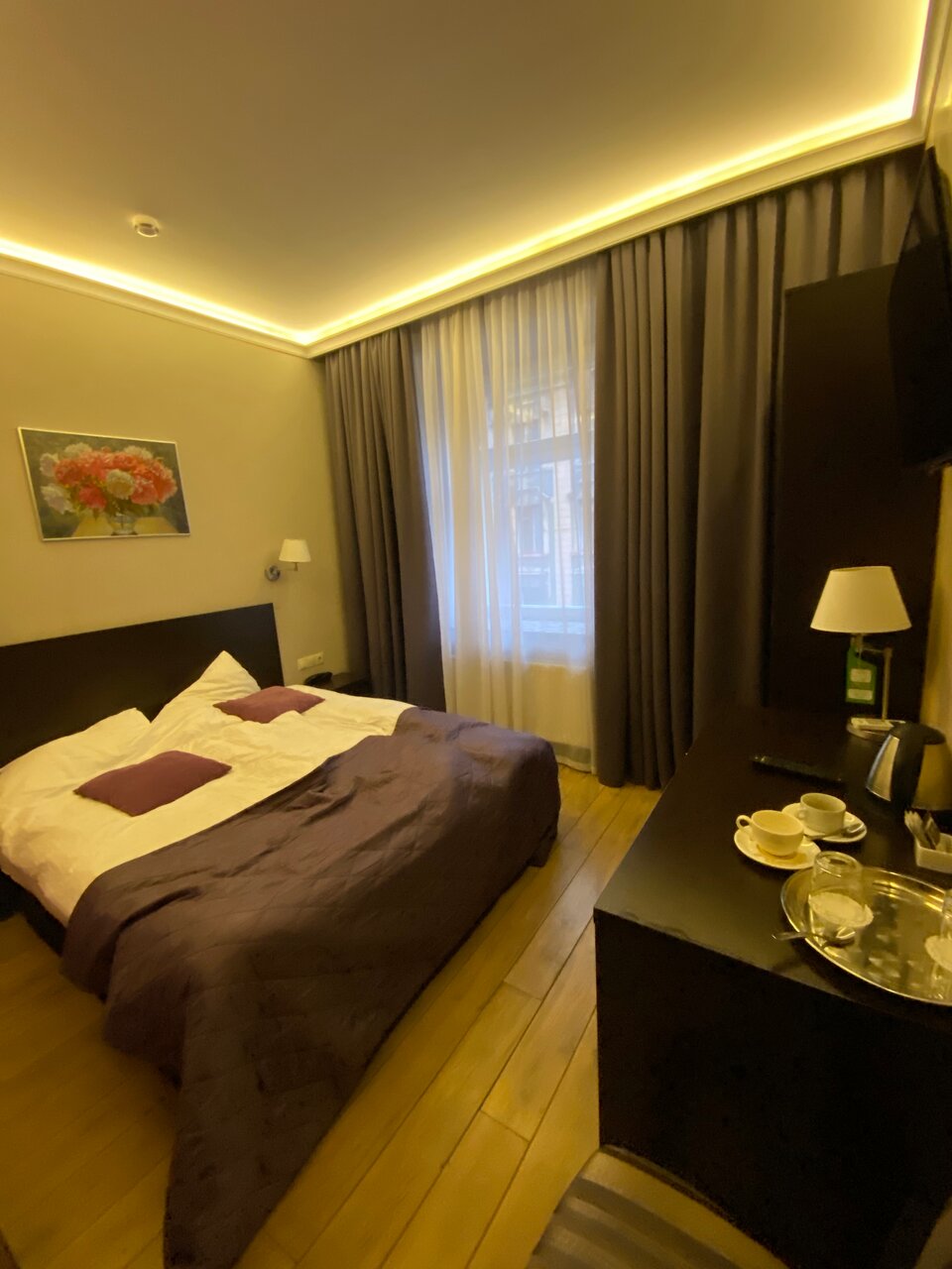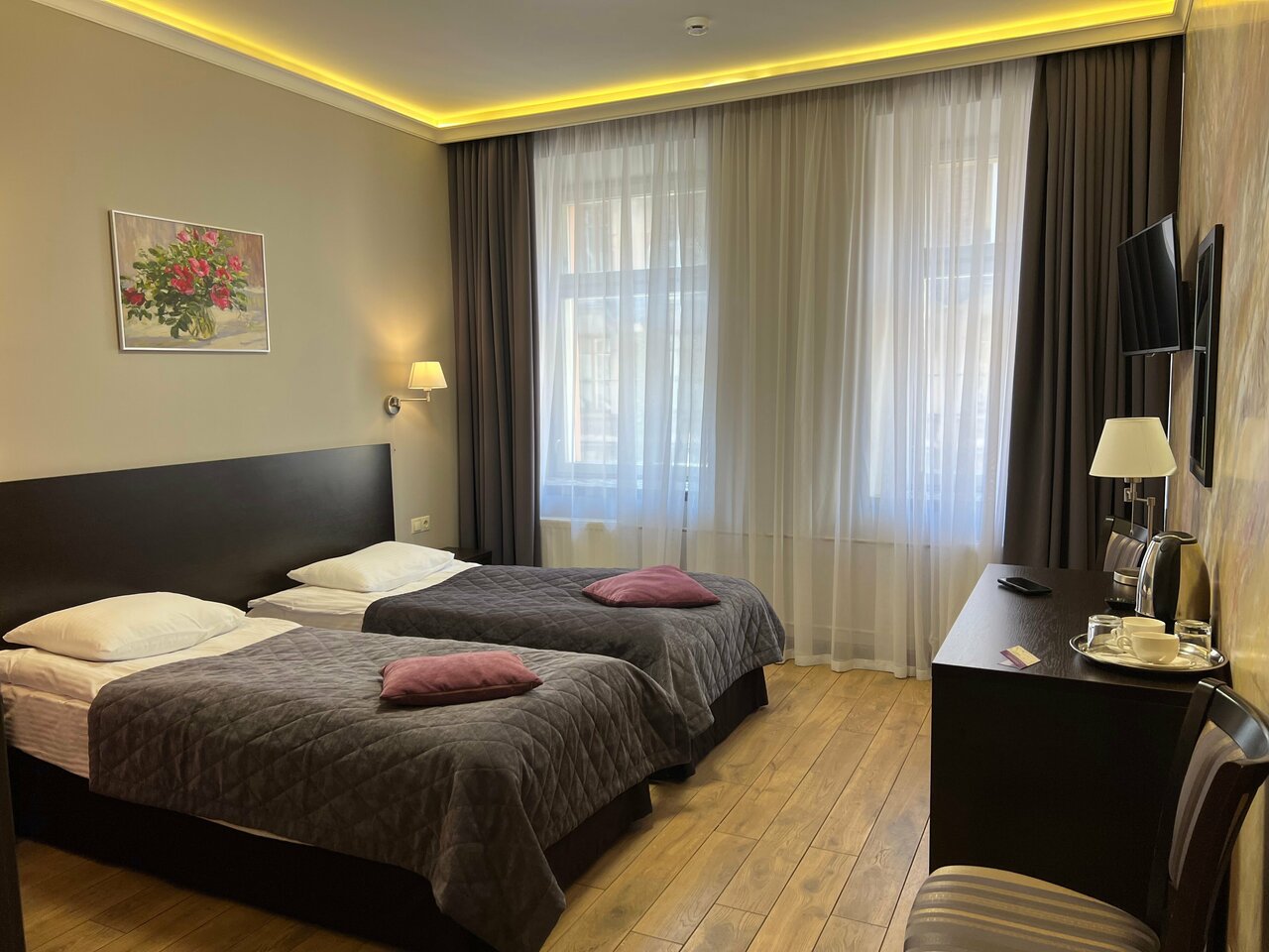 Хороший отель на свои 3 звезды. Чисто, отлично расположен, особенно если вы в Мариинку планируете ходить. Немного бы разнообразила завтраки, вместо сладкой творож.массы лучше бы просто творог, запеканка хорошая, но чересчур сладкая, яйца как-то странно готовят, омлет-скрэмбл был всего раз за неделю, вот он был удачным. А круассаны весьма хороши. Вода в кране иногда долговато нагревалась, но, видимо, специфика старого здания. В целом — 4+, но ставлю 5.